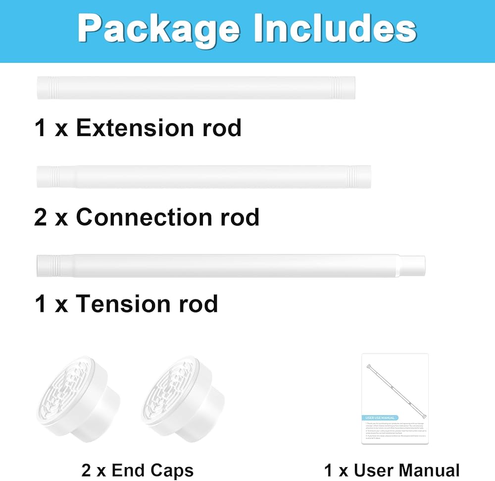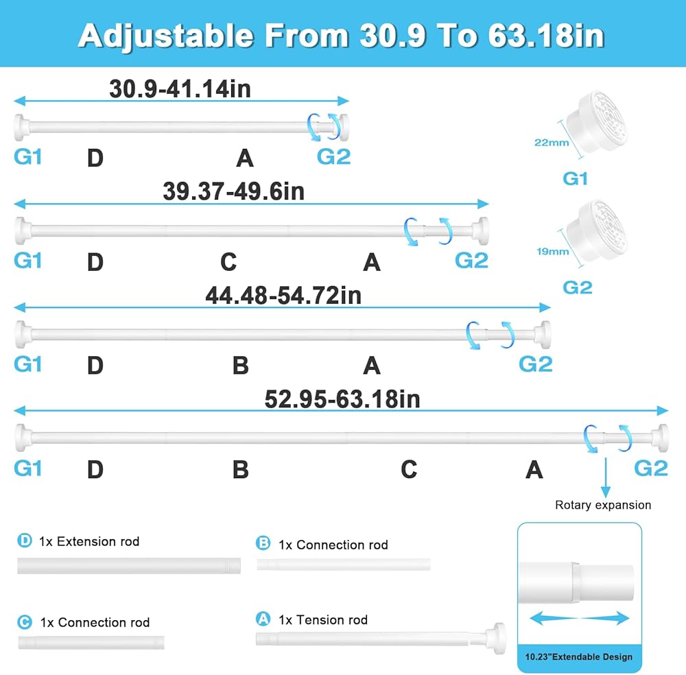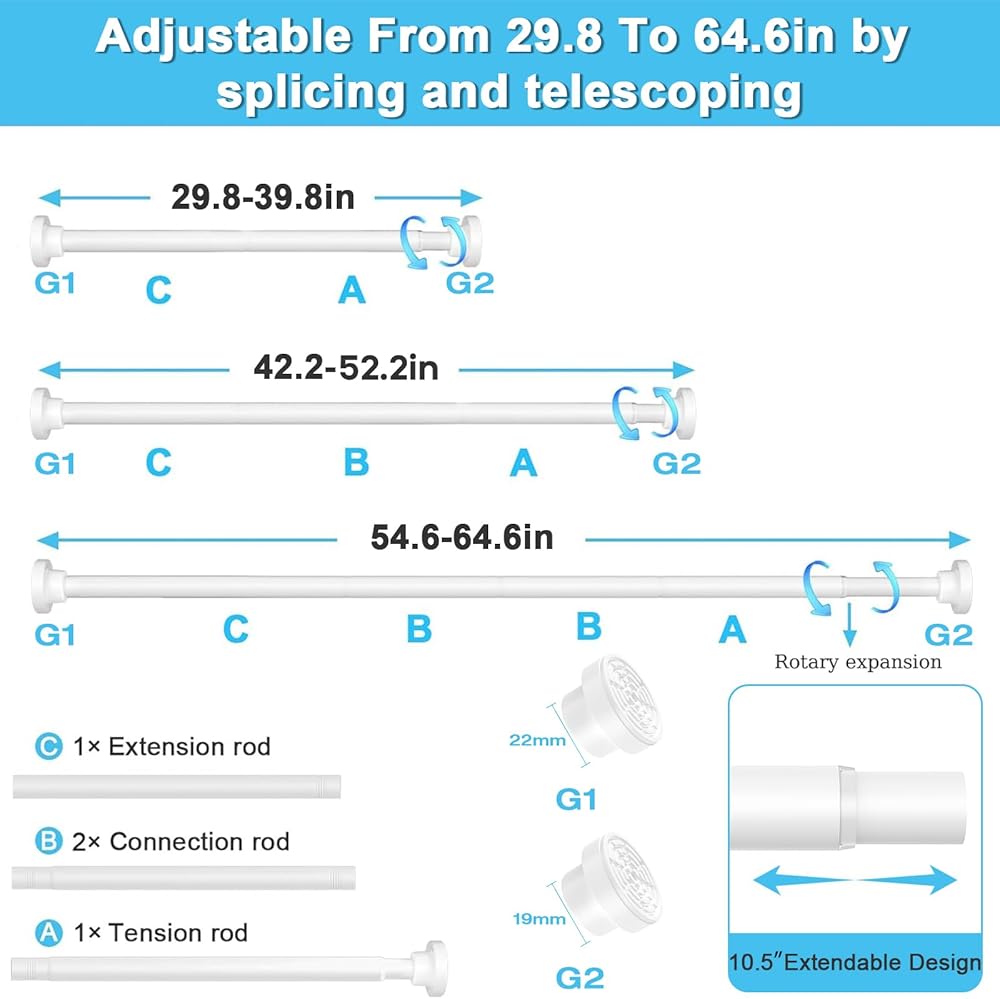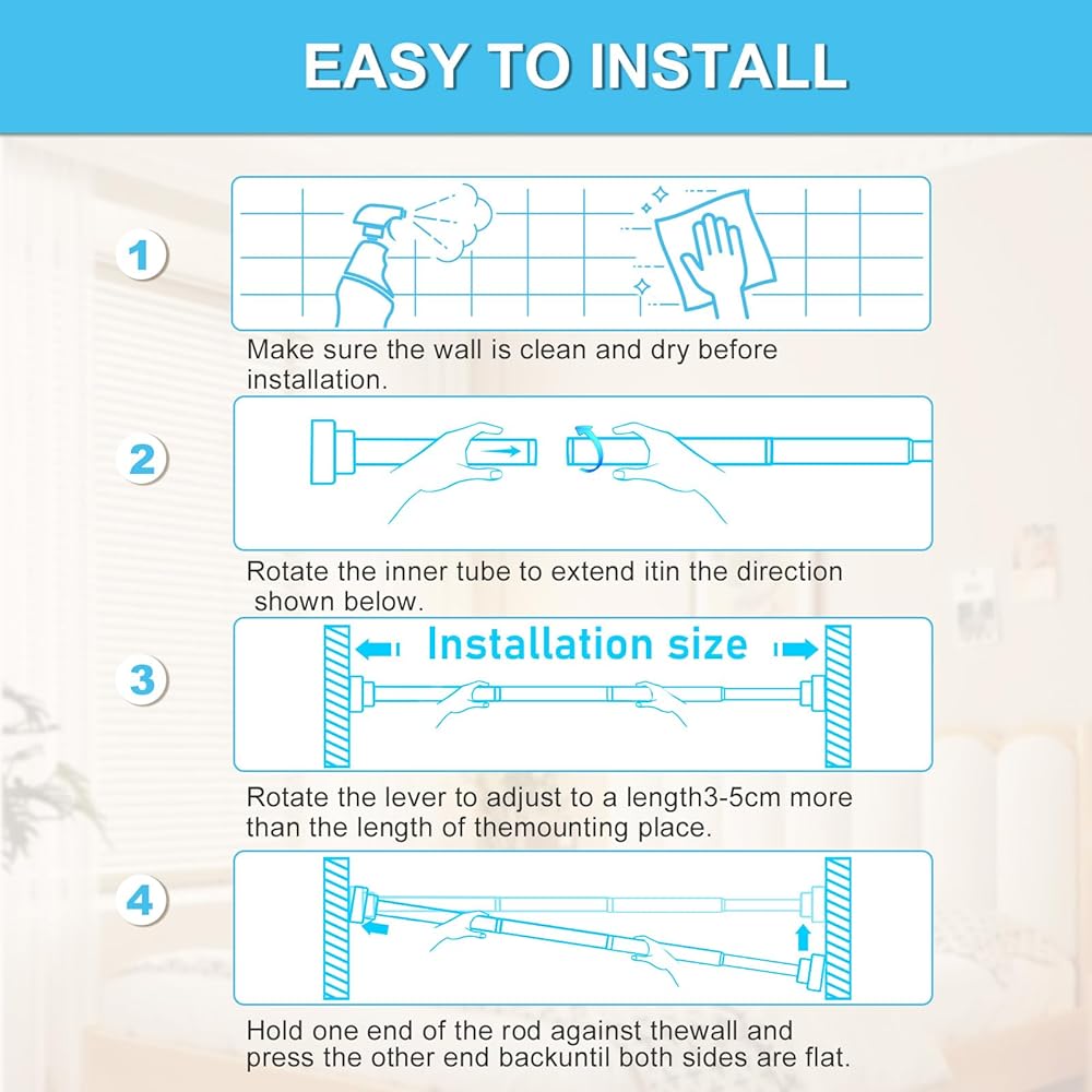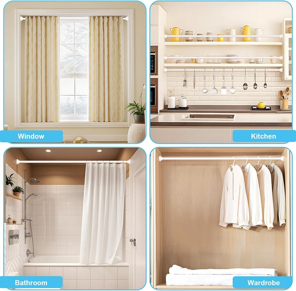 【قضيب شد قابل للتعديل】بفضل النوابض عالية الجودة وآلية الشد القابلة للتعديل، يمكن لهذا القضيب حمل ما يصل إلى 35 رطلاً بشكل آمن، مما يجعله مثاليًا لتعليق الستائر في مساحات مثل غرفة المعيشة أو غرفة النوم أو المكتب.