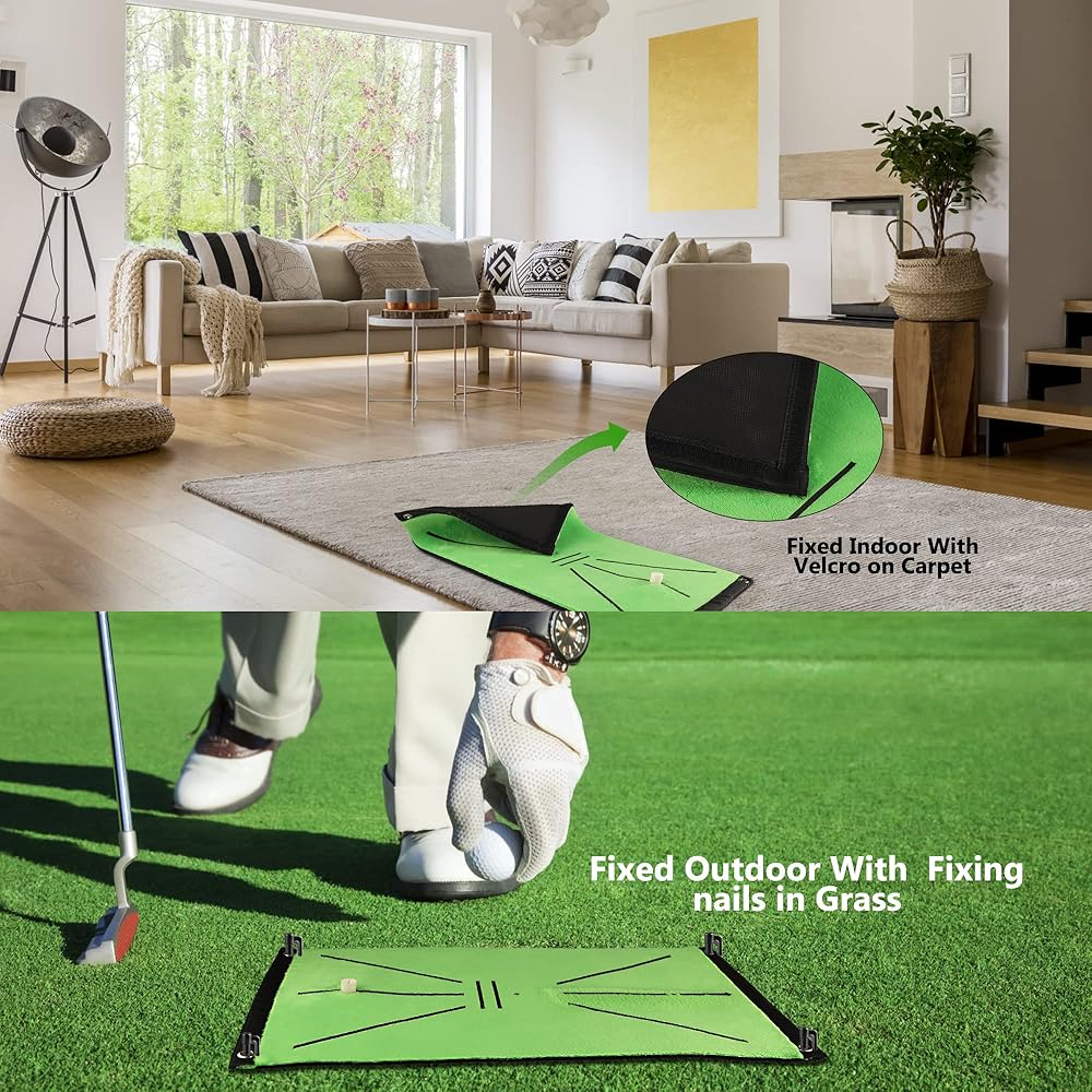 الاستخدام الداخلي والخارجي - تأتي ملحقات الجولف Asyxstar للرجال والنساء مع أربع أوتاد للتركيب الخارجي وشرائط فيلكرو للتركيب الداخلي، حتى تتمكن من ممارسة الضرب في المكتب أو الإحماء قبل اللعب. عزز ممارستك في المكتب والمنزل والشرفة والفناء الخلفي والجراج وفي الهواء الطلق. عند ممارسة الرياضة في الفناء الخلفي، يمكن لسجادة العشب المتينة أن تنقذ عشب الفناء الخلفي الخاص بك من خلال توفير حماية طويلة الأمد لحديقتك.