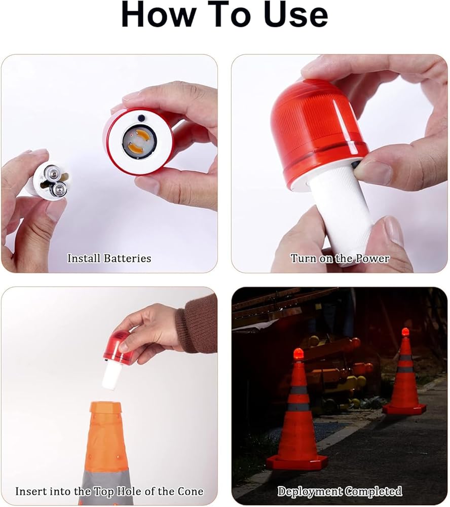 مرئية للغاية: ضوء LED المخروطي المروري الساطع يجعل المخاريط مرئية للغاية للسائقين ويبقيك آمنًا في الليل. يمكن استخدامه للتحكم في حركة المرور على جانب الطريق، ومواقف السيارات، والأمن، وإشارات الطوارئ، وسلامة الأطفال.