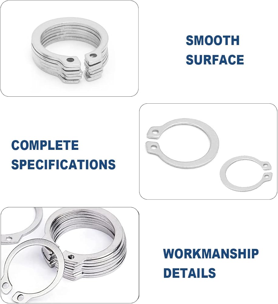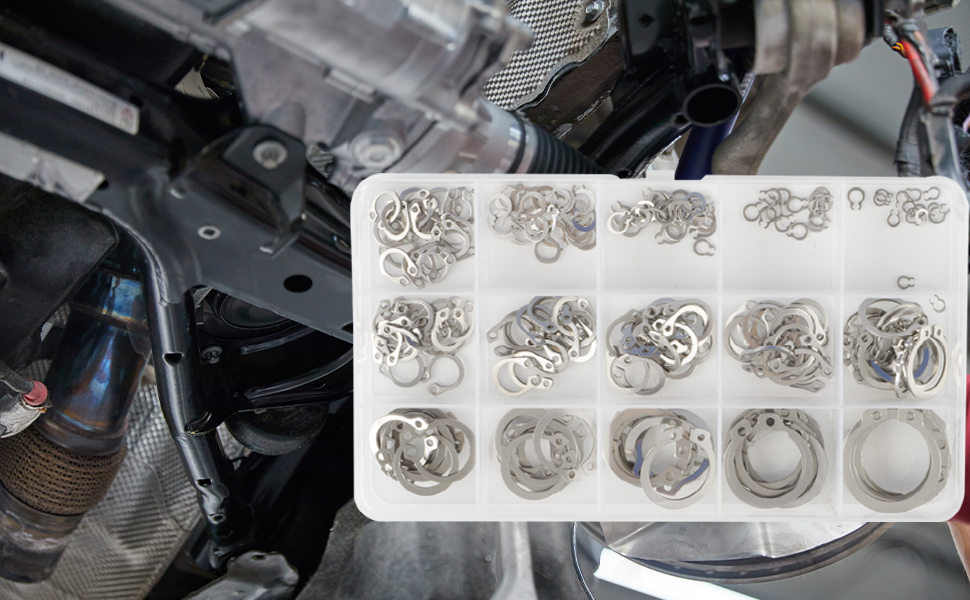• 15 مقاسًا الأكثر استخدامًا: تتضمن مجموعة حلقات الاحتفاظ الخارجية 15 مقاسًا: 3 مم، 4 مم، 5 مم، 6 مم، 8 مم، 9 مم، 10 مم، 11 مم، 12 مم، 15 مم، 16 مم، 17 مم، 20 مم، 22 مم، 25 مم. يمكن للأحجام الـ 15 الأكثر شيوعًا أن تلبي احتياجاتك المختلفة.