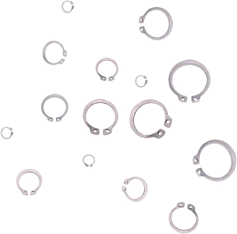 225 قطعة من حلقة المفاجئة الخارجية المصنوعة من الفولاذ المقاوم للصدأ 304، 15 مقاسًا مجموعة متنوعة من الحلقات الدائرية (8 مم - 25 مم)