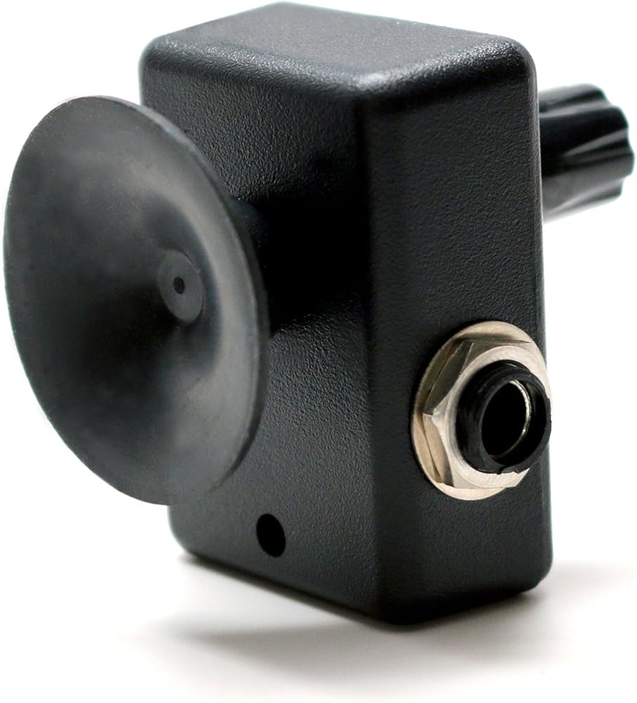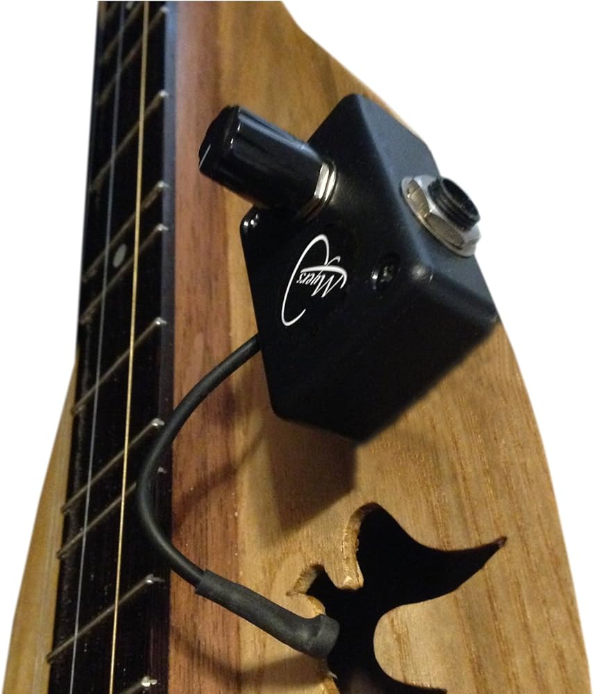 SPECIFICATIONS: Compact Design. Soft Rubber Fluted Volume Knob. Powered Active Preamp. Long Life Battery (included). Mounting Hardware (included). 1/4" Input Jack with Preamp Switch Activation. Built-in Highly Sensitive Omnidirectional Pickup Mic. Effect Pedal Compatibility. Made in the USA. Patented