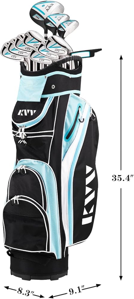 Women's 11-Piece Complete Golf Clubs Set: It is specifically designed for right-handed women golfers, offering a comprehensive 11-piece set that includes everything you need on the course. The set includes a 1# driver, a 3# fairway wood, a 5# hybrid, and irons ranging from 5# to P#, along with a putter. Please note that there is no golf bag included.