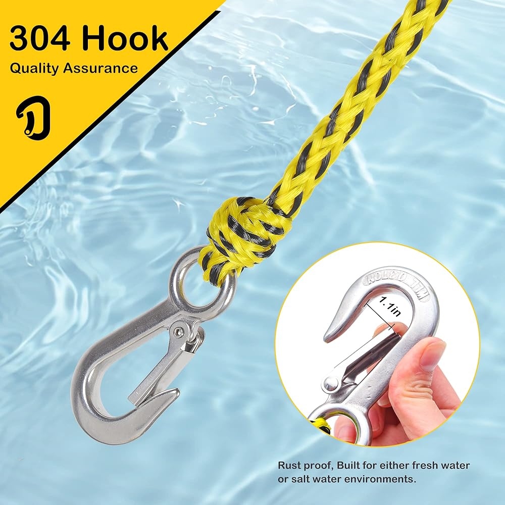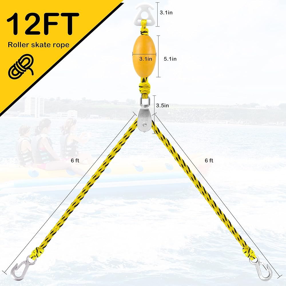 حبل طويل بطول 12 قدمًا وخطافات بعرض فتحة 1.1 بوصة تقريبًا تجعل السرج يناسب معظم القوارب والطوافات، وهو حل رائع للقوارب التي لا تحتوي على عمود أو عين تزلج لسحب المتزلج أو لوح التزلج أو الأنبوب.