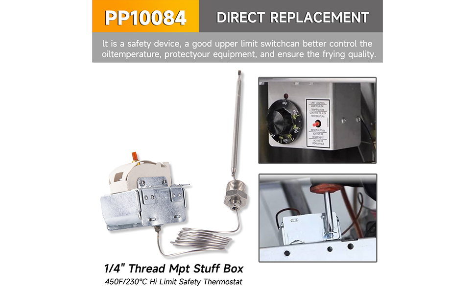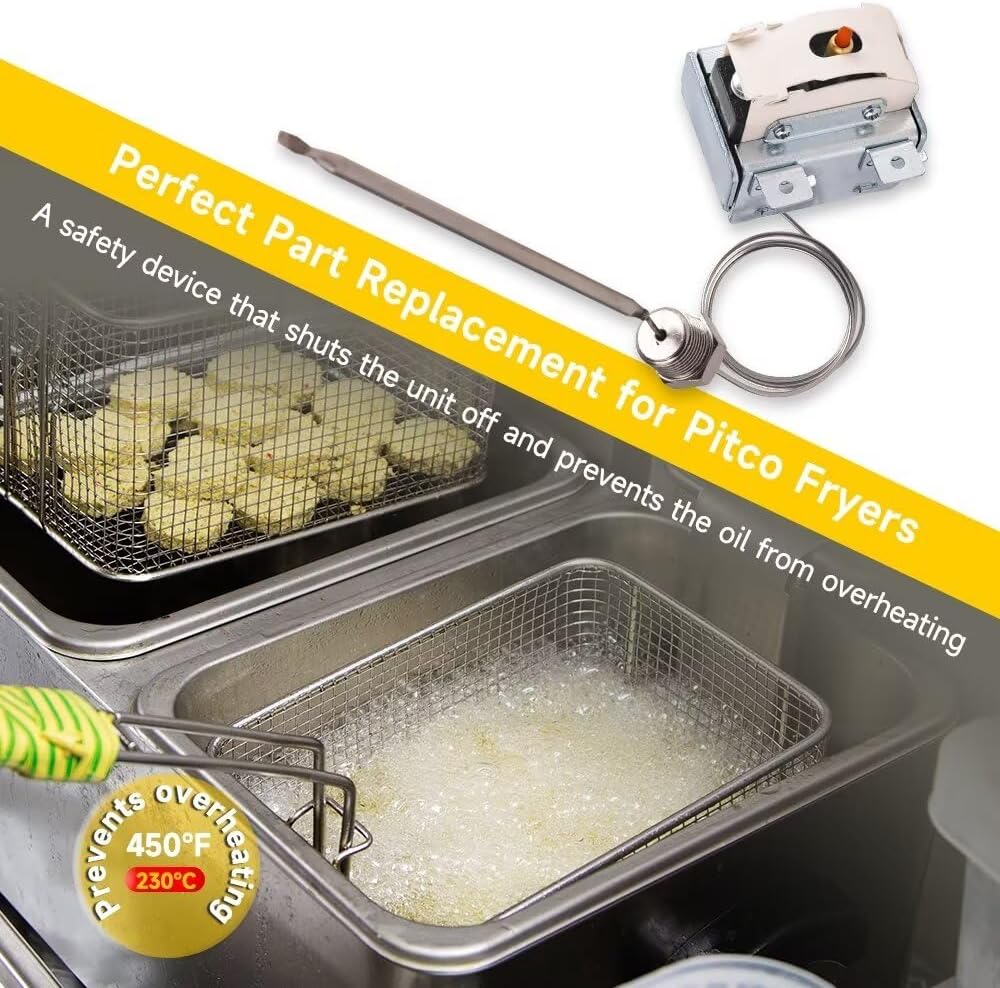 توافق واسع: يتوافق مفتاح الحرارة ذو الحد العالي PP10084 مع مجموعة متنوعة من موديلات مقلاة بيتكو بما في ذلك سلسلة VF35 وMGII وSG14 والمزيد. ويضمن هذا التوافق الواسع إمكانية تطبيقه في إعدادات المطابخ التجارية المتنوعة، بدءًا من المطاعم الصغيرة المستقلة وحتى مؤسسات خدمات الطعام واسعة النطاق، مما يوفر حلاً فعالاً للتحكم في درجة الحرارة.