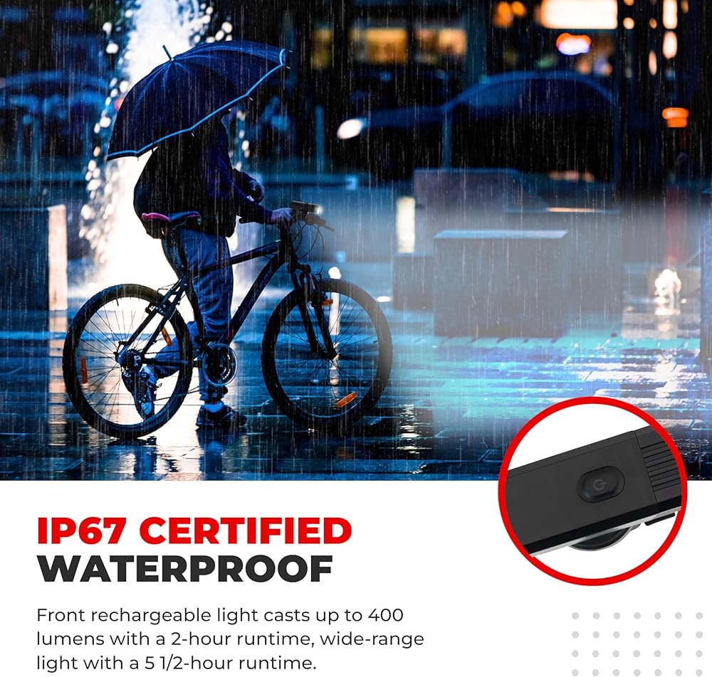 • استشعار ذكي للفرامل: تمتع بتجربة أمان معززة مع المصابيح الخلفية للدراجة التي تتحول تلقائيًا إلى وضع الإضاءة العالية عند الفرامل، وتنبيه راكبي الدراجات الخلفية وضمان سلامتك على الطريق