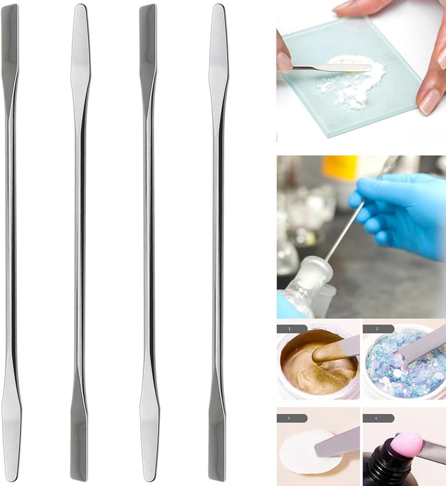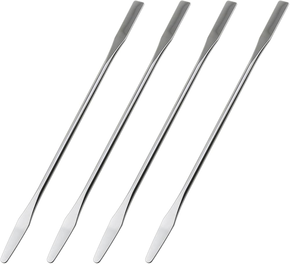 4 قطع 150 مم/5.9 بوصة ملعقة مسطحة مزدوجة الرأس للمختبر شبه مصغرة ملعقة مدببة برأس مسطح فضي من الفولاذ المقاوم للصدأ ملعقة صغيرة مزدوجة الرأس مناسبة لمختبر العلوم والحرف اليدوية