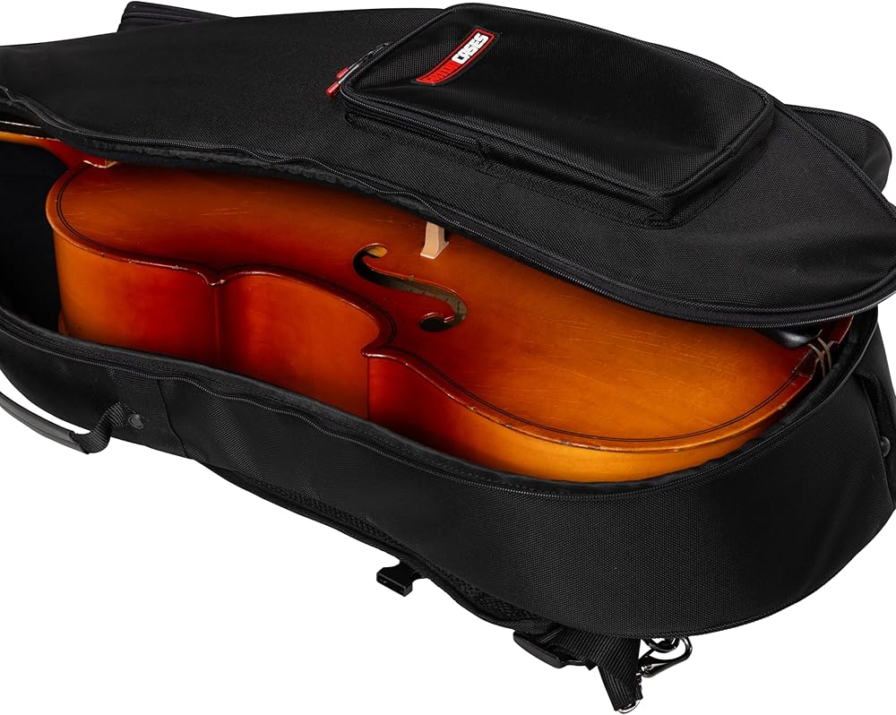 Durable, rigid, and top tier 1680D nylon makes the Allegro Series Pro Bag for Cello a must have for all professional and gigging cellists. The included bow case provides both convenient storage and extra peace of mind when traveling with your instrument. This bag was designed to fit the perfect contours and shape of your instrument, ensuring the most delicate parts are protected and secured. Although perfect for cellists of all ages, this case shines with collegiate, professional, and gigging musicians who are often on-the-go and want to know their cello will be ready for their next playing session. This bag will guarantee your instrument will accompany you from practice to performance for years to come.