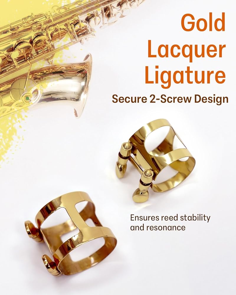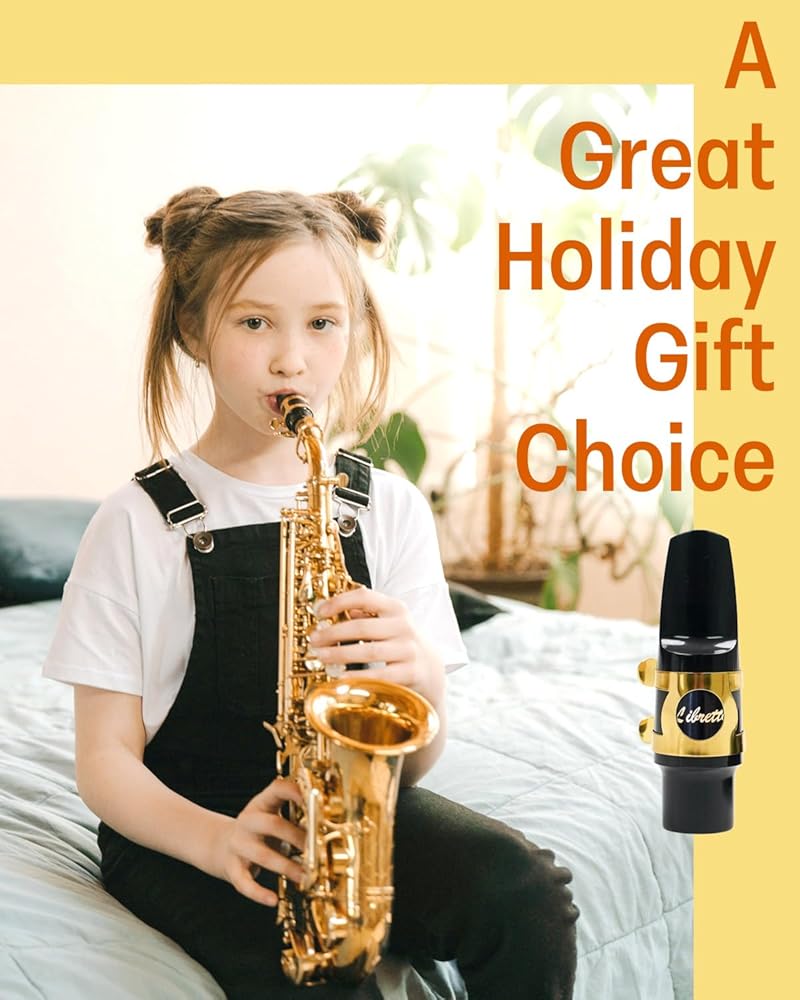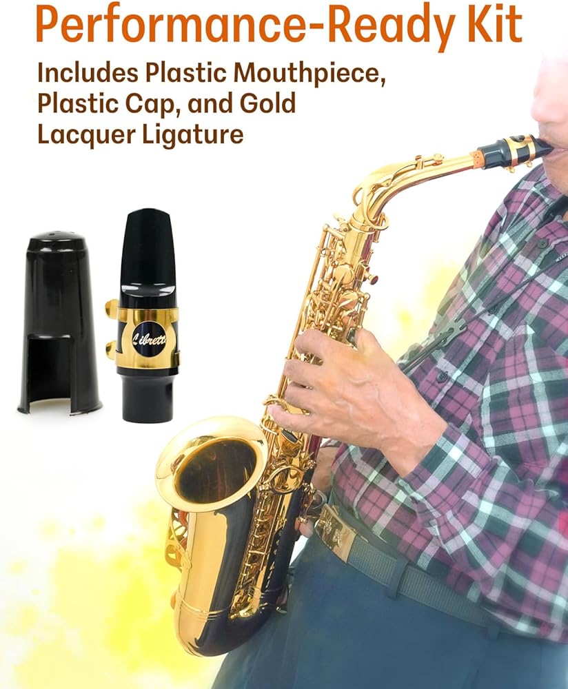 مجموعة قطع الفم Libretto Alto Saxophone، مجموعة قطع الفم القياسية القابلة للهدايا: قطعة فم ABS، غطاء بلاستيكي، رباط مطلي بالذهب. مصممة بدقة للمبتدئين والطلاب