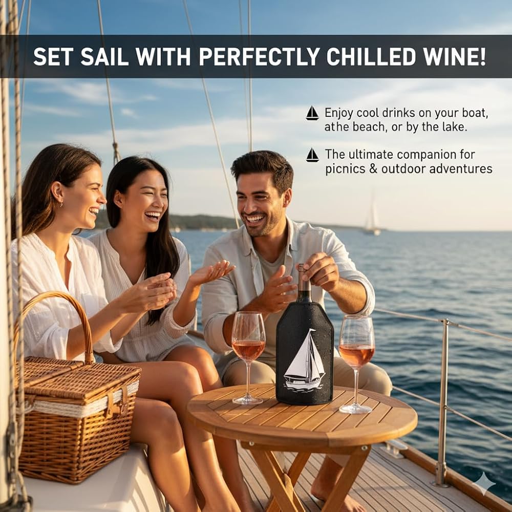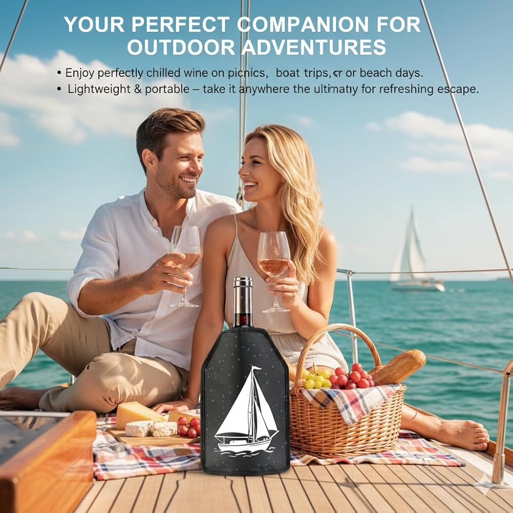 غلاف مبرد النبيذ العالمي لجميع الزجاجات - يبرد بسرعة ويحافظ على النبيذ والشمبانيا والبيرة باردة في دقائق - مبرد جل محمول بدون فوضى للنزهات والحفلات