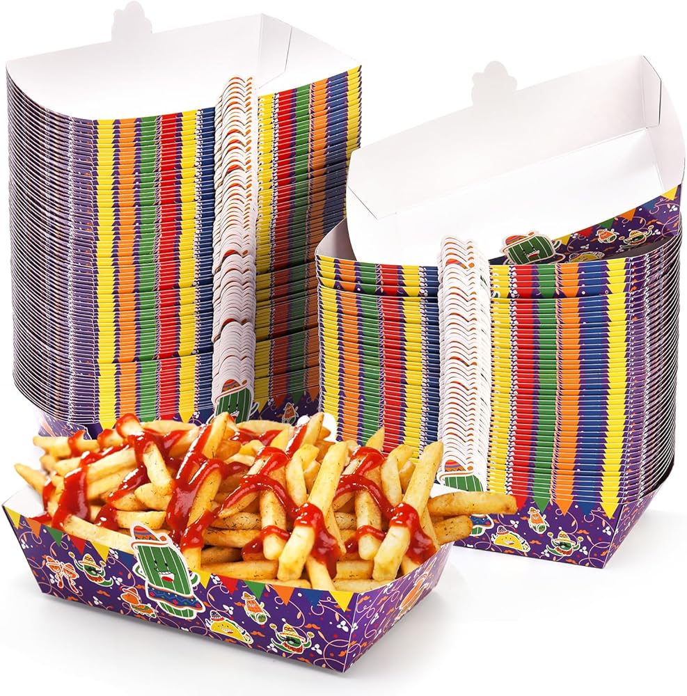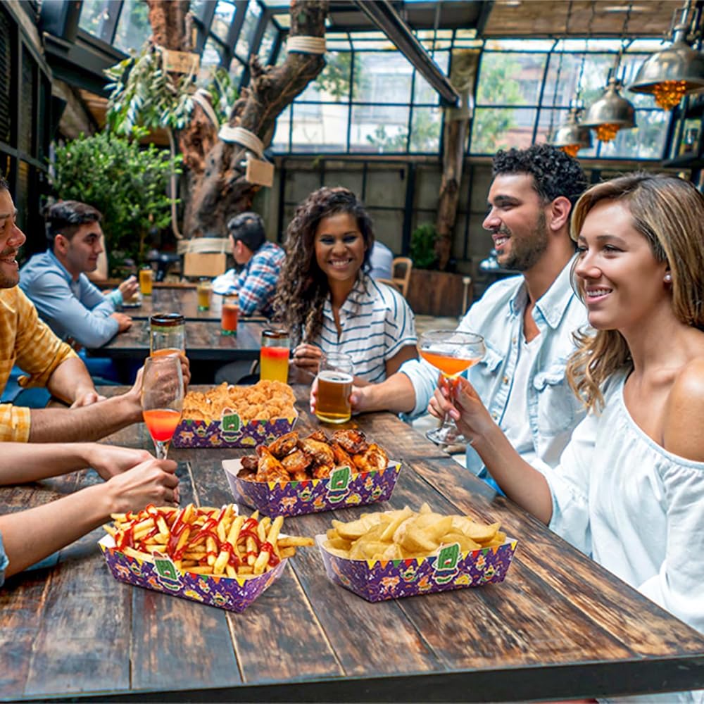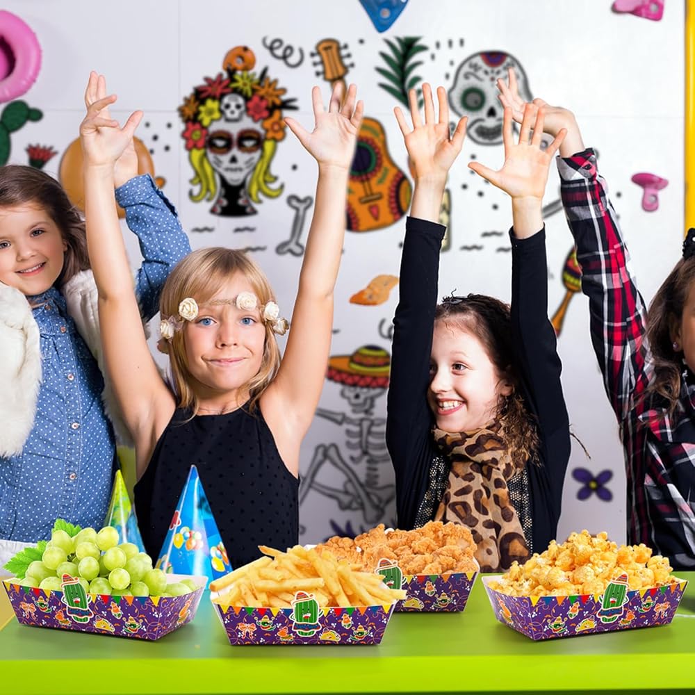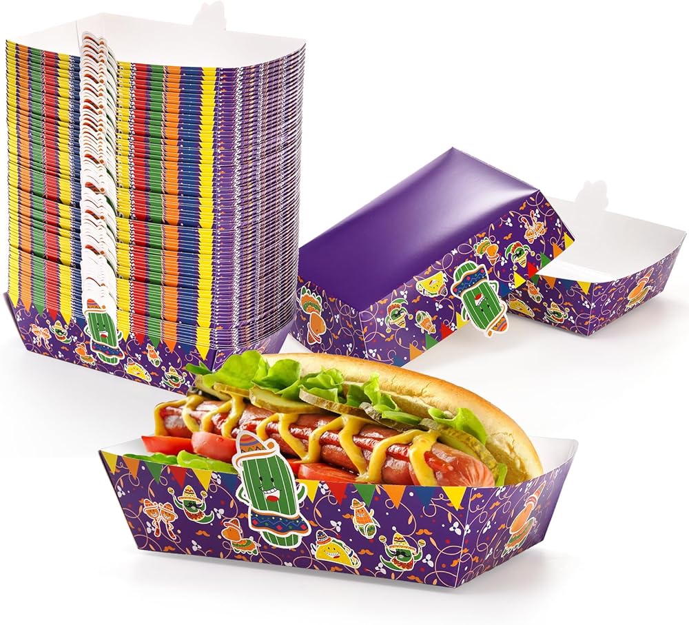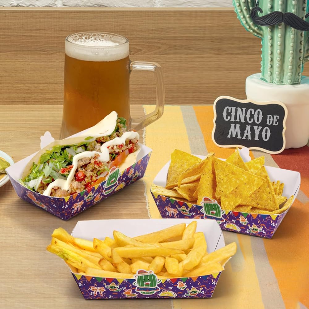 استخدامات متعددة: تُعد ديكورات الحفلات ذات الطابع المكسيكي خيارًا جيدًا للحفلات ذات الطابع المكسيكي، والكرنفالات، وسينكو دي مايو، وأعياد الميلاد، والنزهات. ستعمل صواني الطعام الورقية الملونة هذه على الارتقاء بتجربة تقديم الطعام لديك!