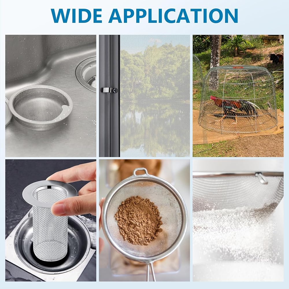 ☑️[تطبيق واسع] يمكن استخدام الشبكة السلكية المنسوجة من الفولاذ المقاوم للصدأ كأغطية تهوية، وشاشات قمامة الصرف، وشبكة معدنية للحديقة، وشبكة معدنية لقفص الدواجن، وشاشات النوافذ، وشوايات الشواء، وأغطية الموقد وما إلى ذلك.