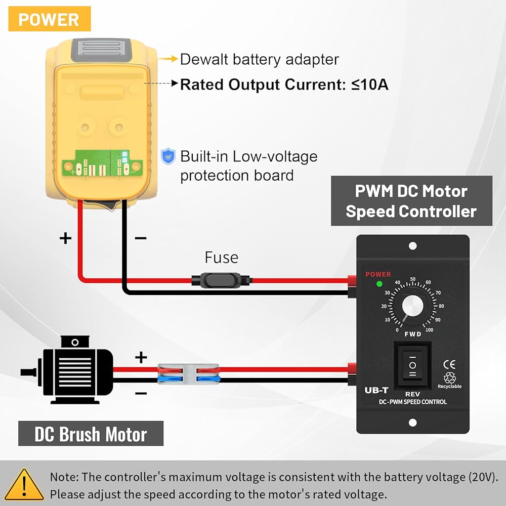 سهل الاستخدام: نحن نجمع بين محول البطارية ووحدة التحكم في سرعة المحرك مع سلكين مقاومين للحرارة وحامل الصمامات، مما يجعلها أكثر سهولة في الاستخدام، فقط قم بتثبيت البطارية على محول البطارية ثم قم بتوصيل وحدة التحكم في سرعة PWM بجهازك. (ملاحظة: البطارية غير متضمنة)