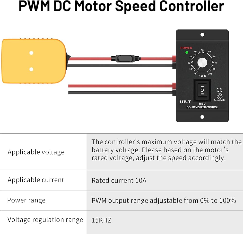 تطبيق واسع: مجموعة التحكم في سرعة محرك DC هذه مناسبة لترقية ألعاب الركوب أو عربات الجولف أو سيارات الألعاب أو محركات النفخ أو مراوح العادم أو زخارف إضاءة LED أو الروبوتات DIY. إذا كان لديك أي أسئلة، فلا تتردد في استشارة لنا