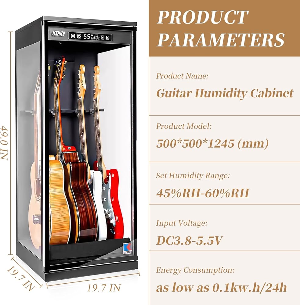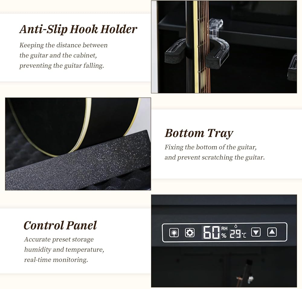 خزانة مرطبة لإزالة الرطوبة من الجيتار متعددة الوظائف، يمكن استخدامها للجيتار الكهربائي، أو الجيتار الصوتي أو مجموعة القيثارة وصيانتها، الترطيب الذكي وإزالة الرطوبة، الرطوبة قابلة للتعديل، مناسبة جدًا للمنزل أو العمل، أول ترطيب خالٍ من الضباب بتدفق الهواء الدقيق، أكثر أمانًا، أكثر ضمانا!