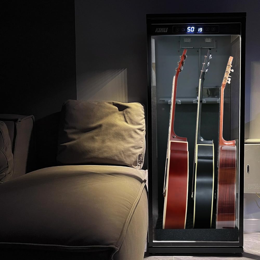 في بيئة رطبة جدًا أو جافة جدًا، تكون القيثارات عرضة للعفن والتورم والتشقق والانبعاج، مما يؤدي إلى فقدان جودة الصوت وحتى تلف الجيتار. يمكن تجنب ذلك إذا تم ضبط نطاق الرطوبة لمزيل رطوبة الجيتار على 45% رطوبة نسبية - 60% رطوبة نسبية.