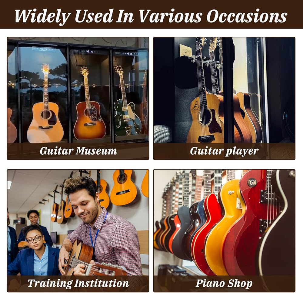تحتوي خزانة إزالة الرطوبة والترطيب للجيتار متعددة الوظائف على ثلاثة جيتار صوتي أو أربعة جيتار كهربائي مع 4 مزالج غير قابلة للانزلاق بالداخل. يمكن للإبزيم غير القابل للانزلاق أن يحافظ على المسافة بين الجيتار والخزانة لإصلاح رقبة الجيتار بسهولة. امنع جيتارك من السقوط يمكنك اختيار خزانة إزالة الرطوبة والترطيب التي تناسب احتياجاتك، ولا تقتصر على رطوبة المنطقة، بل على رطوبة المنطقة.