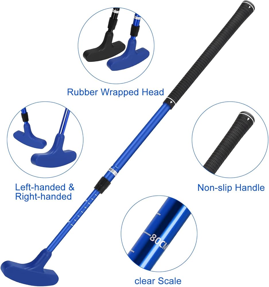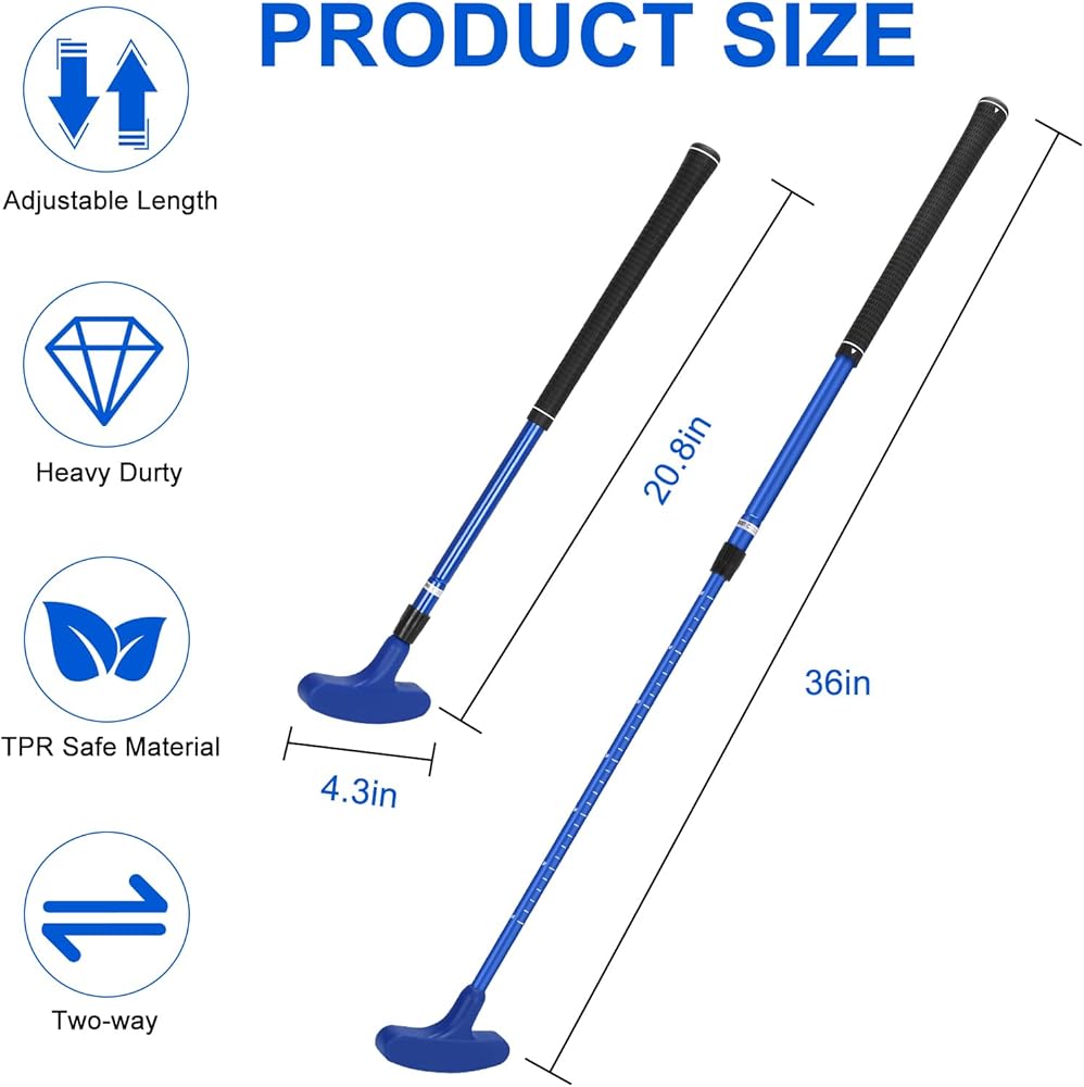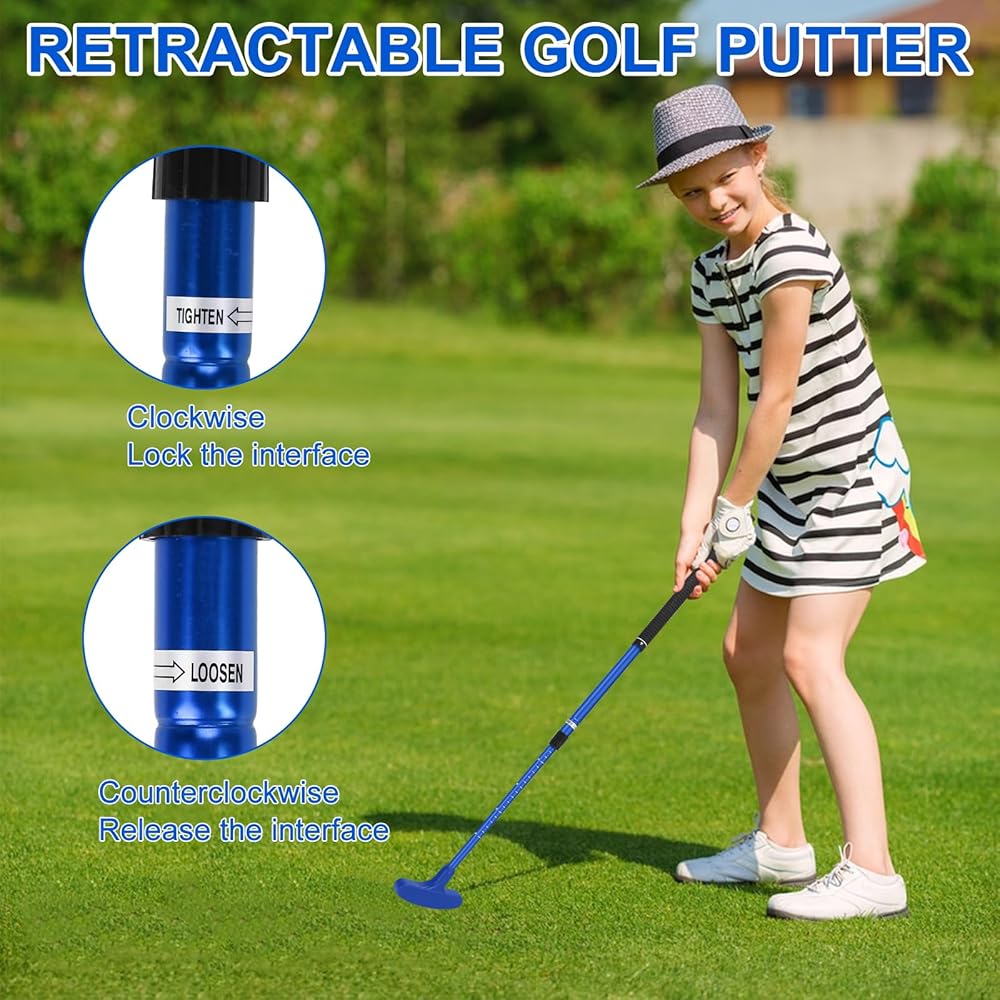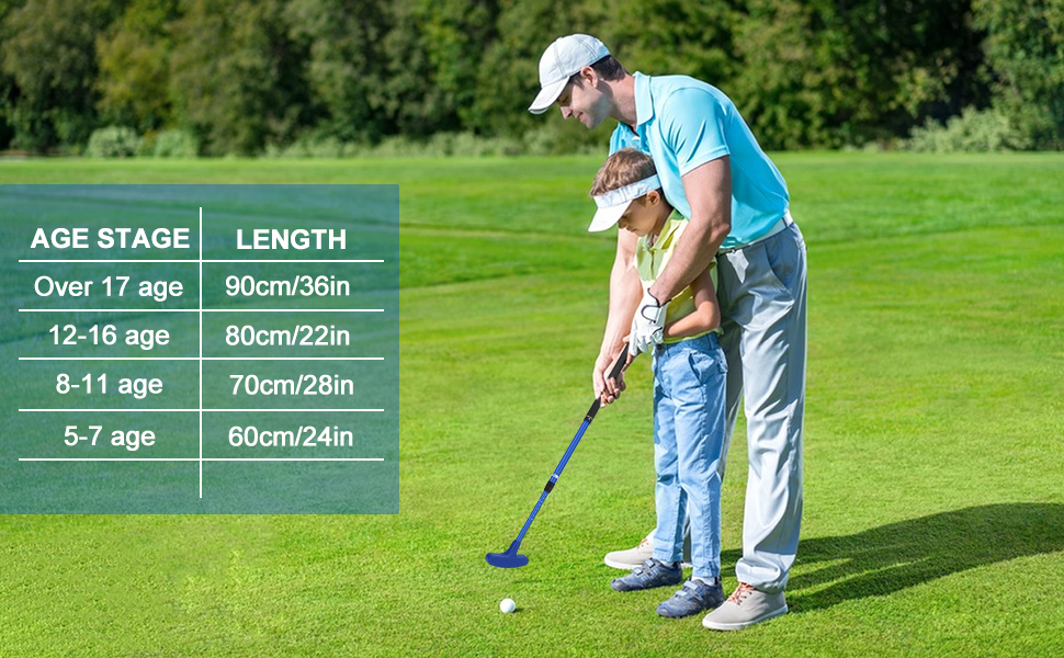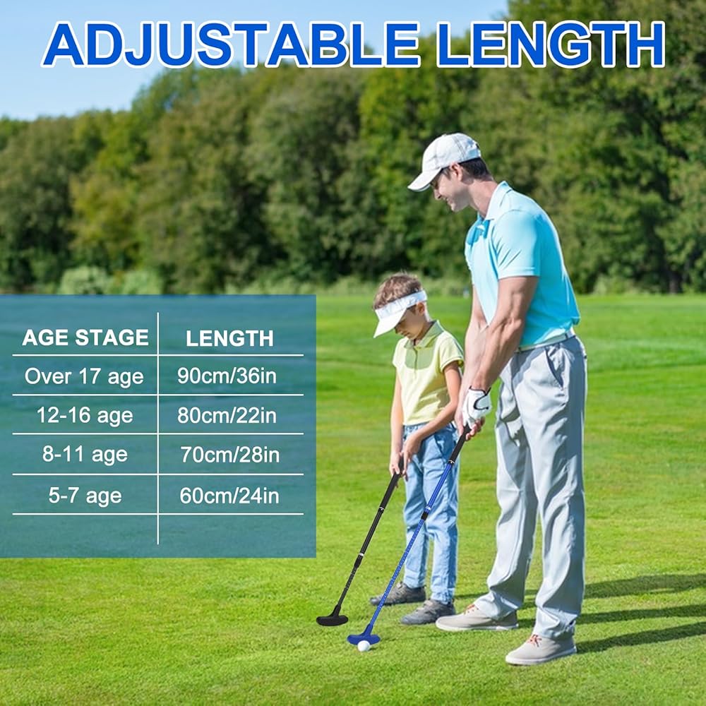 يتميز مضرب الجولف الصغير هذا بتصميم عمود قابل للتعديل لسهولة وضعه وتخزينه. يمكنك ضبط طول العمود إلى 21-36 بوصة حسب الحاجة. وهي مناسبة لجميع الأعمار، بما في ذلك الأطفال والصغار والكبار.