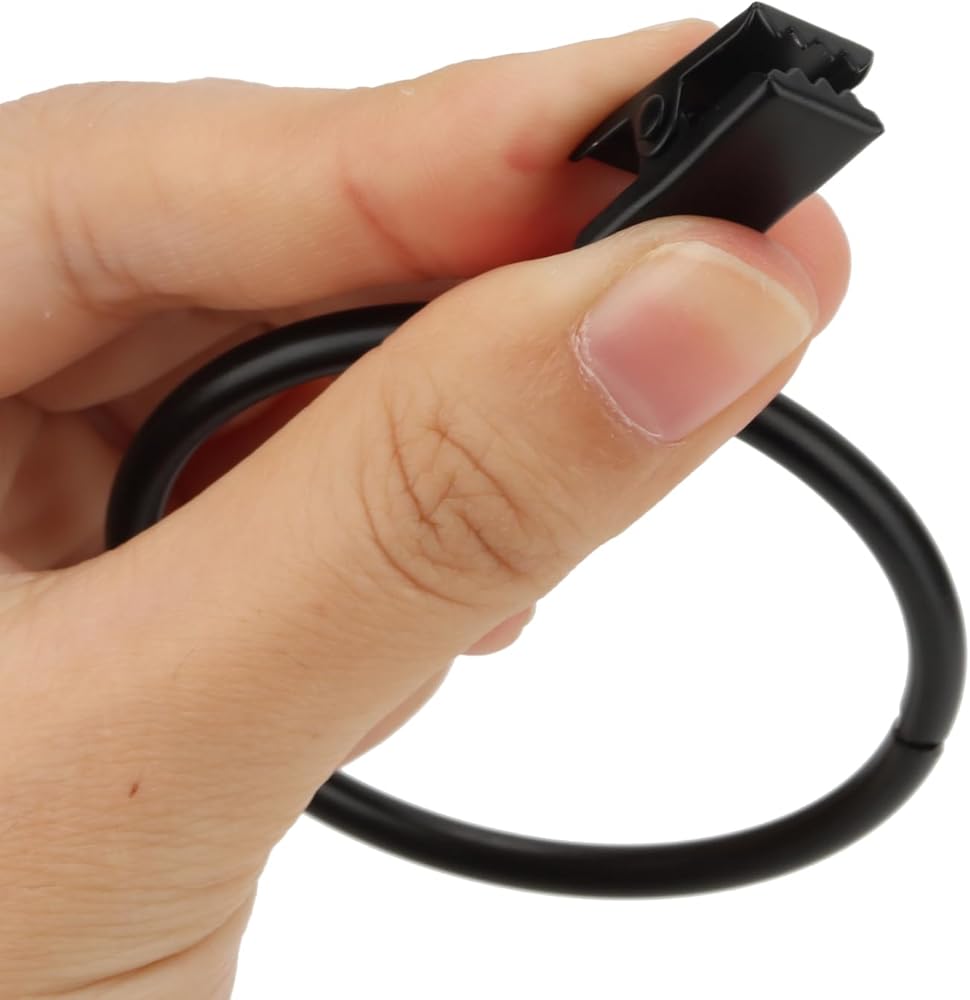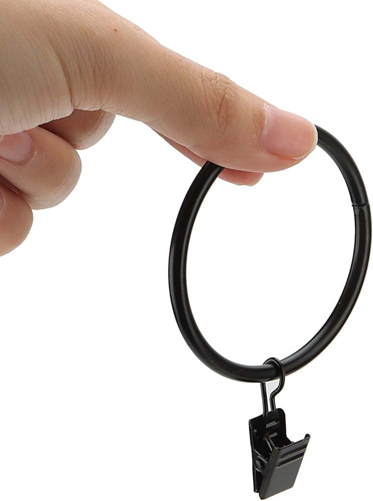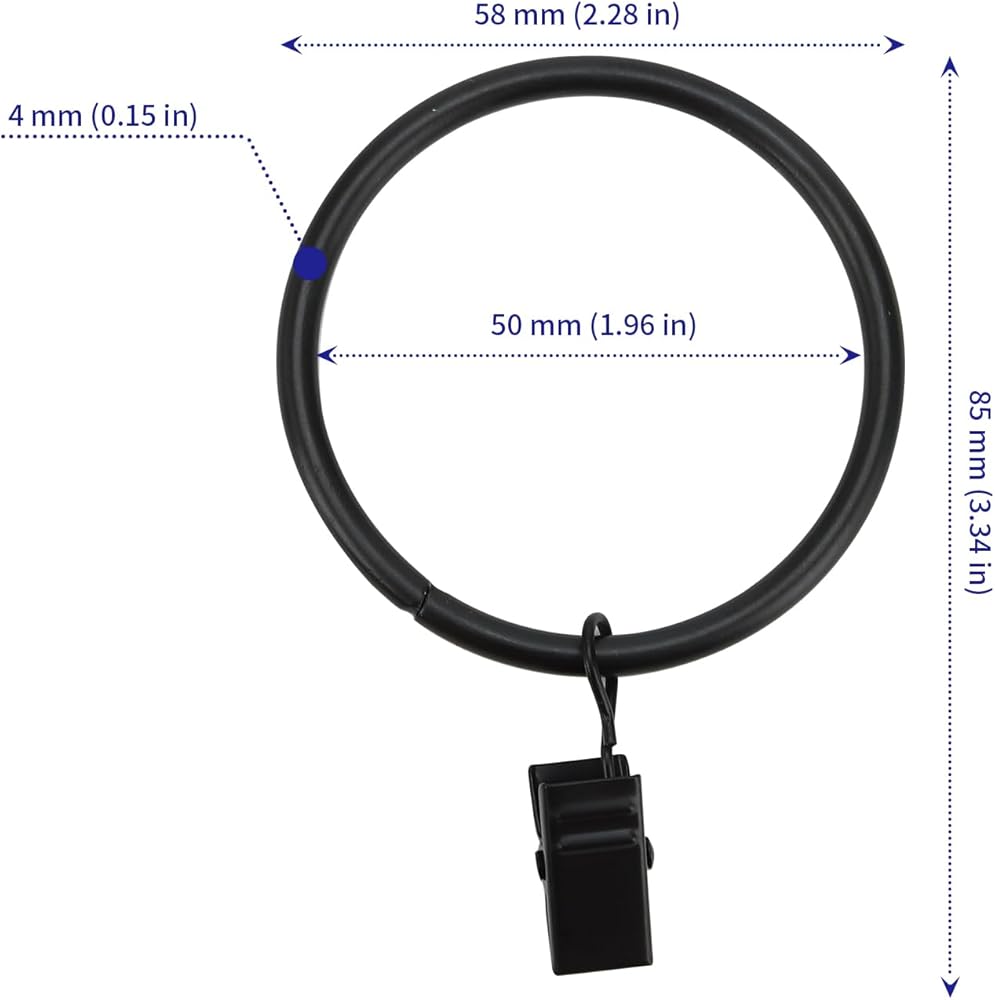 EXACT SPECIFICATIONS - You will receive 50 pack of c Black Curtain Rings with Clips, it's total length is 3.4 inch, the inner diameter of the ring is 2 inch, and the thickness of the ring is 0.15 inch.