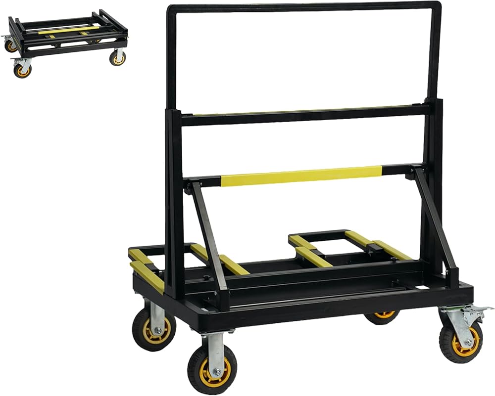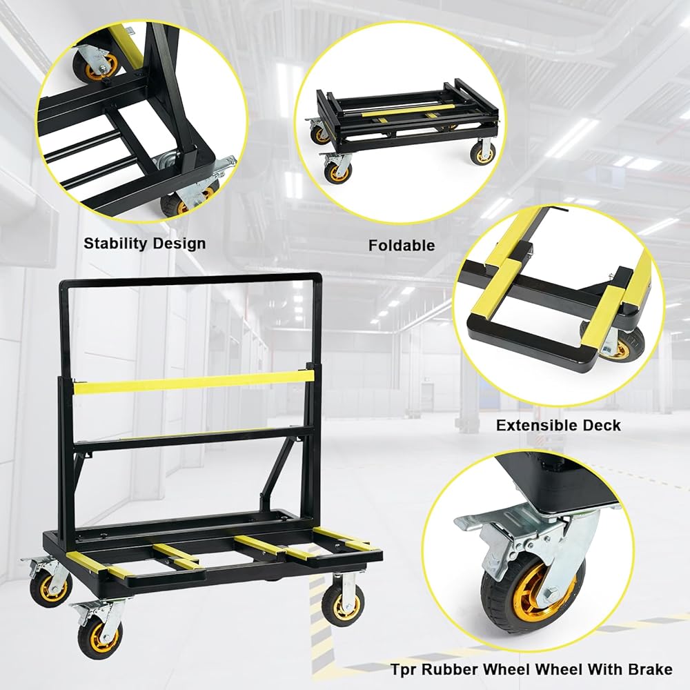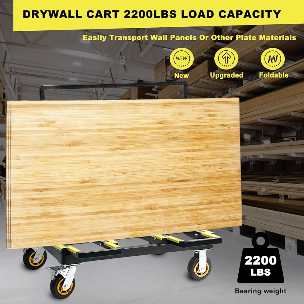 عربة الحوائط الجافة القابلة للطي بسعة تحميل 2200 رطل من Legines، عربة دوللي ذات لوحة شديدة التحمل مع عجلات دوارة مطاطية، التعامل مع لوحة الحائط، الألواح الصخرية، لوحة خشبية، نوافذ، دوللي متدحرجة للمرآب والمستودع