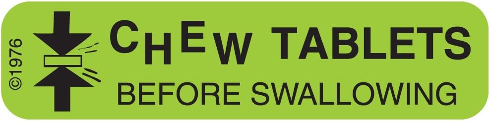 - Label Reads: CHEW TABLETS BEFORE SWALLOWING