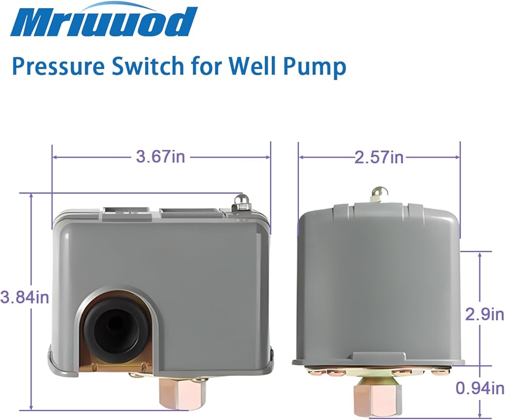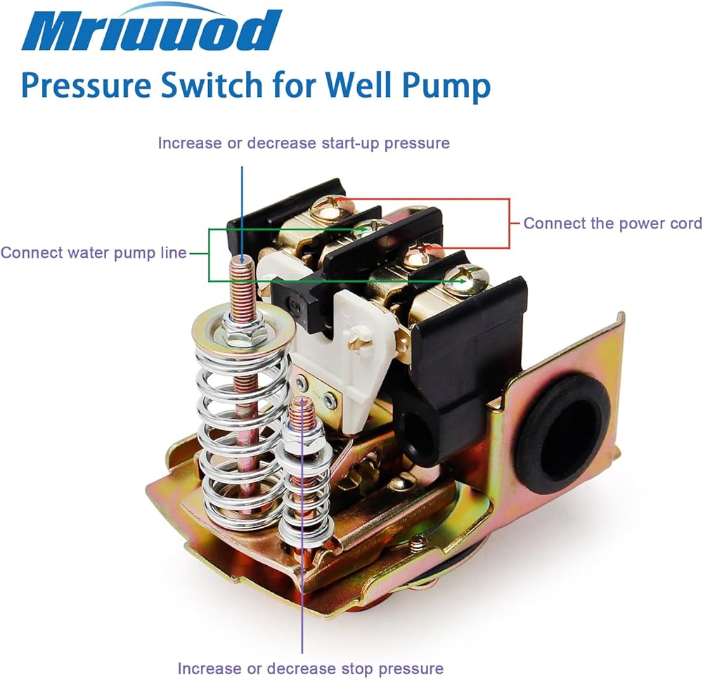 • توافق متعدد الاستخدامات: مفتاح الضغط القابل للتعديل الخاص بنا مع وصلة NPT أنثى 1/4 بوصة، مثالي لاستبدال مضخة آبار المياه القياسية. لاستخدام مضخات آبار المياه التي تعمل بالكهرباء من جميع الأنواع (النفاثات، الغاطسة، كمضخات تحضير ذاتية، ترددية، إلخ) .
