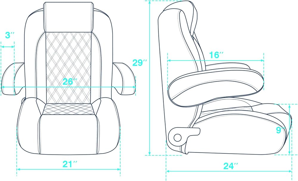 أبعاد المقعد: 19.5 بوصة عمق × 23 بوصة عرض × 33 بوصة ارتفاع. سعة الوزن 300 رطل. سهل التركيب على نمط مسمار التثبيت العالمي 5.25 بوصة × 5.25 بوصة، بما في ذلك براغي التثبيت.