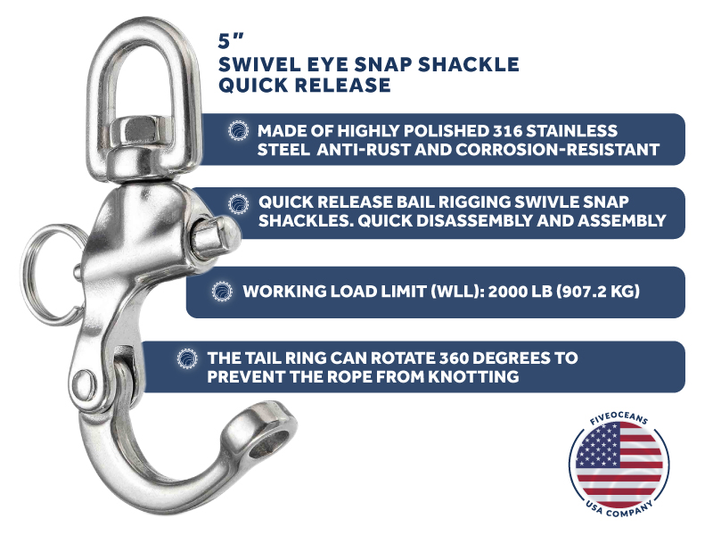 السعة: حد حمل العمل (WLL): 1000 رطل (453.6 كجم). لا تتجاوز أبدًا حد حمل العمل. FIVE OCEANS، 40 عامًا في تطوير المنتجات البحرية والخارجية عالية الجودة
