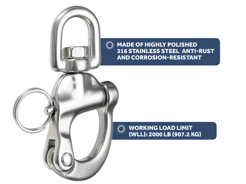 مادة من الدرجة البحرية: مصنوعة من الفولاذ المقاوم للصدأ 316 المصقول بدرجة عالية ومضاد للصدأ والتآكل. عظيم لمقاومة المياه المالحة
