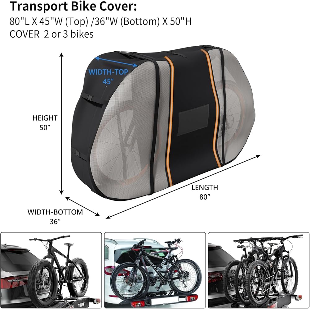 【غطاء كامل لدراجة السفر في الهواء الطلق】: بأبعاد قياس 80 بوصة طول × 36 بوصة عرض (أعلى) × 18 بوصة عرض (أسفل) × 50 بوصة ارتفاع، تم تصميم الغطاء الخاص بنا ليناسب دراجتين قياسيتين، مثل الدراجات الجبلية والطرق. الدراجات والدراجات الهجينة ودراجات طراد الشاطئ. بغض النظر عن نوع الدراجة التي تمتلكها، فإن الغطاء الخاص بنا سيوفر ملاءمة مريحة للنقل دون عناء.