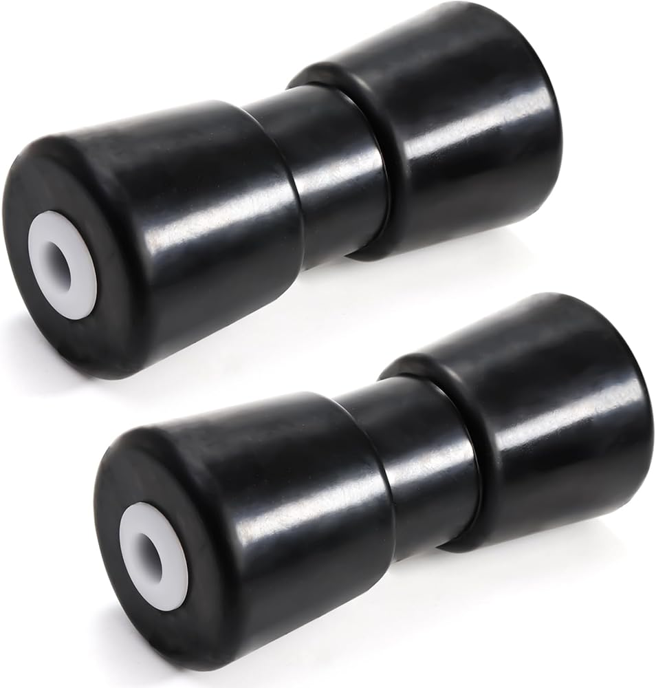 - مجموعة من 2 بكرة مقطورة للقارب باللون الأسود. يوفر حماية موثوقة لعارضة القارب أثناء القطر. مطاط مصبوب فوق أنبوب فولاذي مع حشوات طرفية من النايلون.