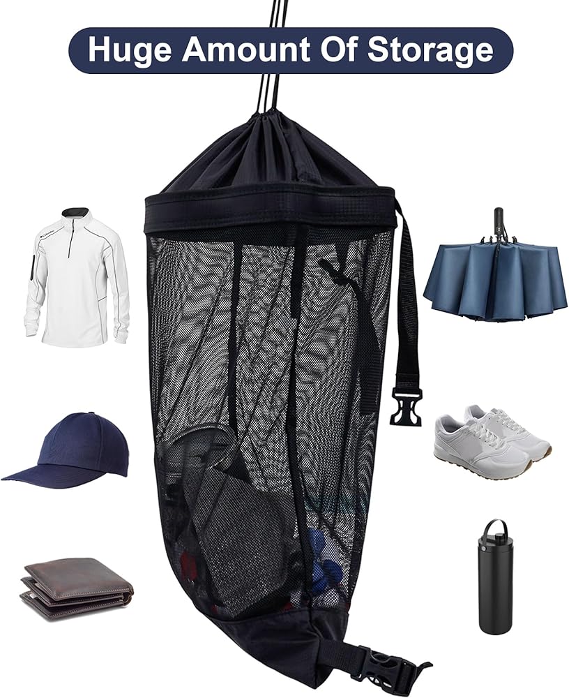 يخزن كمية من أي شيء. تحتوي على كمية كبيرة من التخزين، يمكنك استخدام الحقيبة لحمل معدات المطر والمناشف وحقيبة صغيرة للكرات والقمصان والأحذية والسترات وزجاجات المياه الإضافية للقميص، إلخ.