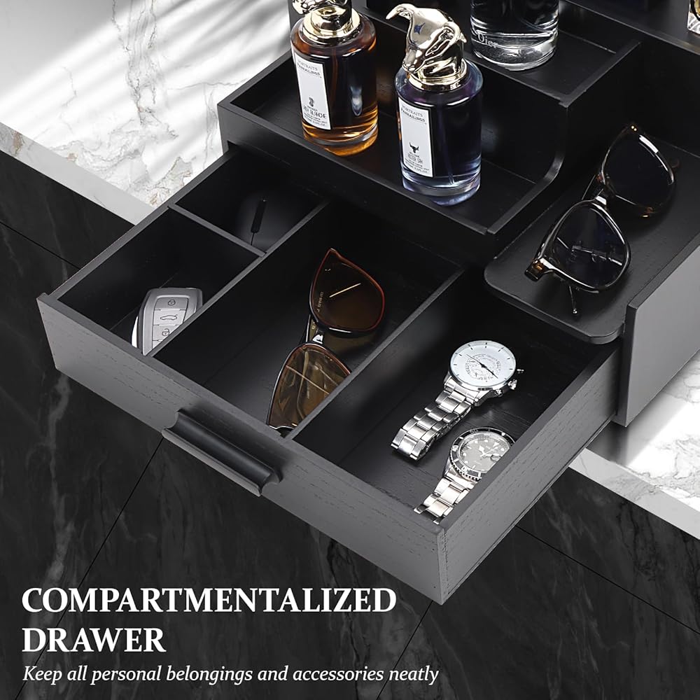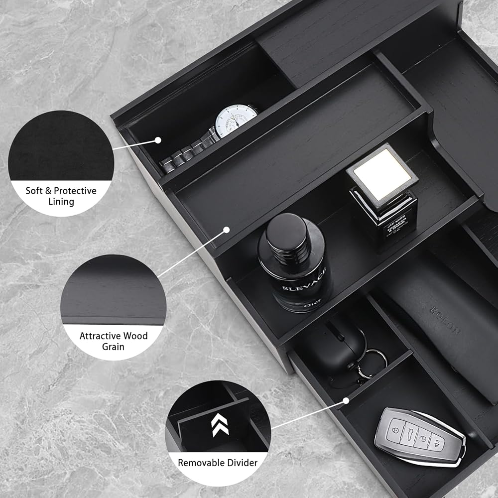 💝【درج عملي 】يتميز حامل الكولونيا بدرج مقسم، ويحافظ على جميع المتعلقات الشخصية والإكسسوارات بشكل أنيق. خاصة بالنسبة لبعض العناصر الصغيرة: المحافظ، والساعات، والنظارات، وأجهزة iPod، والخواتم، والقلائد، ومفاتيح السيارة وغيرها من الضروريات اليومية. يوفر الفاصل القابل للإزالة أيضًا إمكانية تخصيص الحجم وفقًا لاحتياجاتك.
