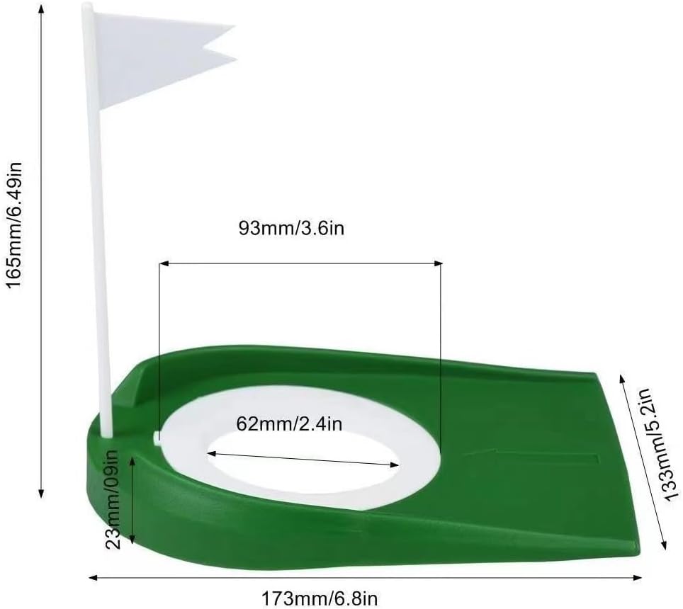【Dimension】Golf Putting Cup Size: 6.5" x 6.8" x 5.2" and the hole diameter is about 2.4"