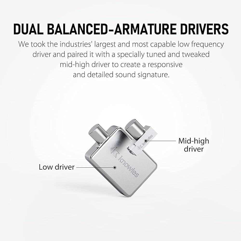 We took the most capable low frequency driver and paired it with especially tuned and tweaked mid‐high driver to create a perfectly balanced, with a responsive and detailed sound signature that is not overly hyped or colored—so audiophiles will enjoy a fulfilling listening experience right out of the box.