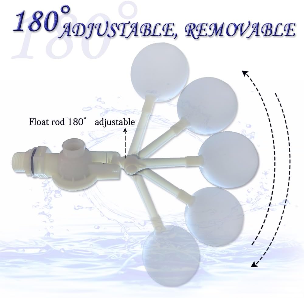 صمام تعويم، 1/2 بوصة صمام تعويم مياه قابل للتعديل، صمام تعويم بلاستيكي للتحكم في مستوى المياه أوتوماتيكيًا بالكامل، وحدة تحكم أوتوماتيكية في مستوى المياه لخزان المياه، حمامات السباحة، أحواض الماشية، مضخة المياه، حوض المياه.