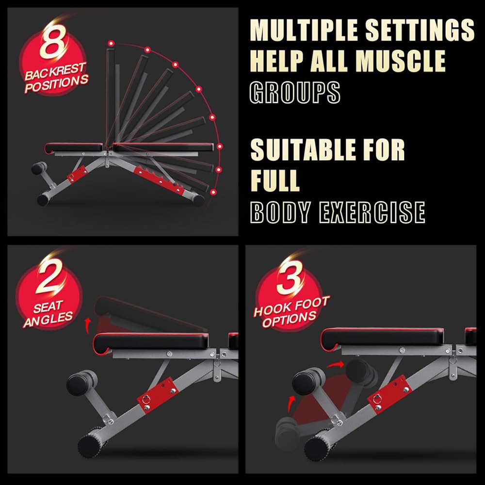 【8 أوضاع لمسند الظهر وزاويتين للمقعد و3 خيارات للقدم بخطاف】يمكن أن تساعد الإعدادات المتعددة في استهداف جميع مجموعات العضلات، وهي مناسبة لتمرين الجسم بالكامل. كل ما عليك فعله هو سحب المسمار السريع، وضبط المكان الذي يناسبك والقفل التلقائي.