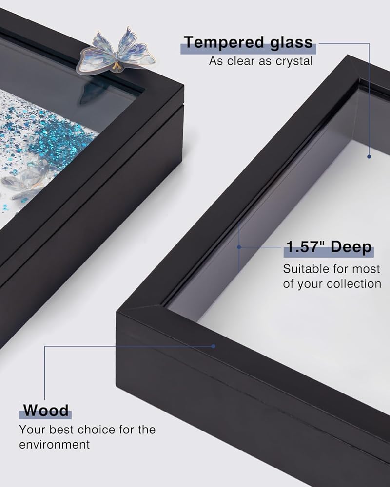 قطعتان من إطار صناديق الظل مقاس 8 × 10 بوصة، حافظات عرض صندوق الظل الأسود للزهور، حافظة عرض الذاكرة مع مساحة 1.58 بوصة لمجموعتك، والهدايا التذكارية، والتذكارات، والصور
