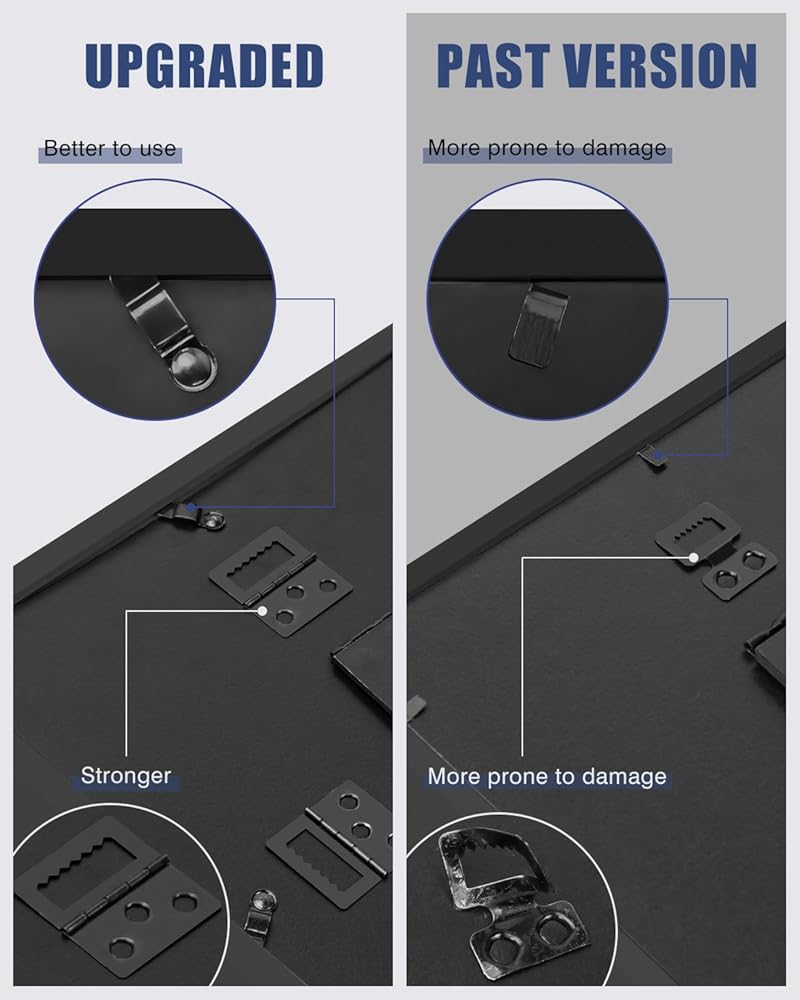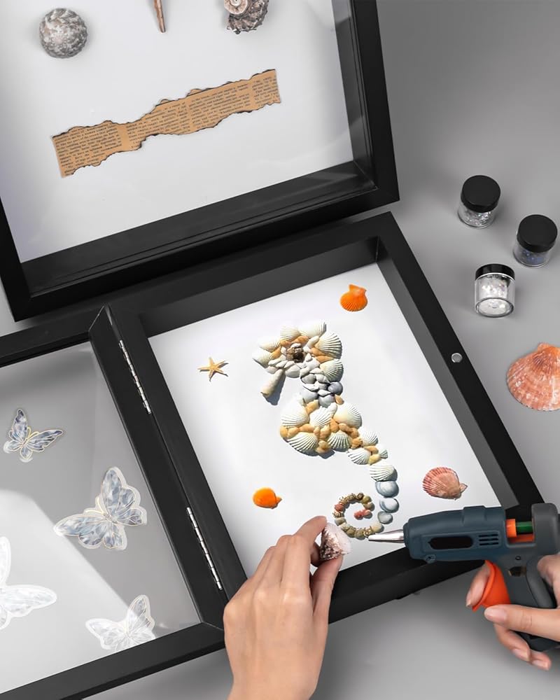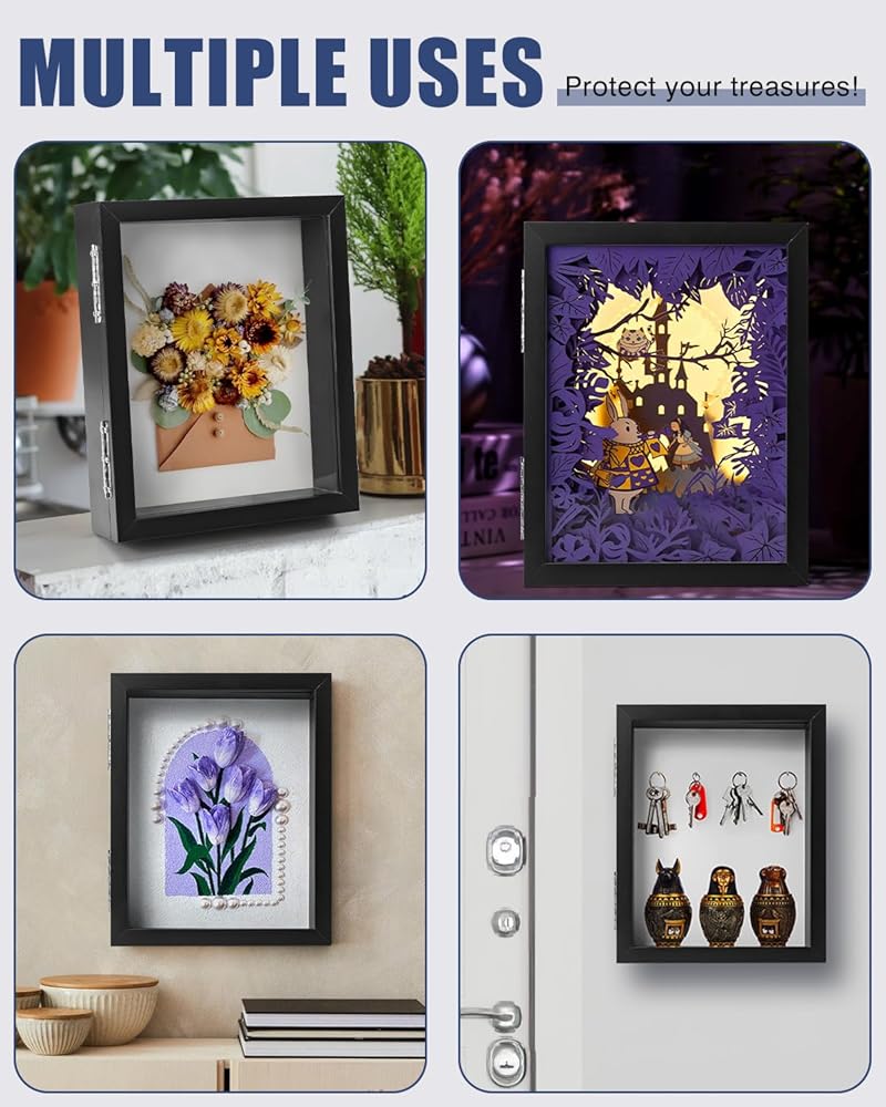 عملي وسهل الاستخدام: ما يميز إطار صندوق الظل هذا هو تصميمه الأمامي المفصلي. يفتح الباب المغناطيسي ويغلق بسهولة، مما يسمح لك بتحديث وإعادة ترتيب شاشتك في أي وقت. هذه الميزة مفيدة بشكل خاص لأولئك الذين يرغبون في تحديث شاشاتهم بشكل متكرر، سواء كان ذلك لعرض الزخارف الموسمية أو تدوير مجموعة من الهدايا التذكارية من رحلات مختلفة