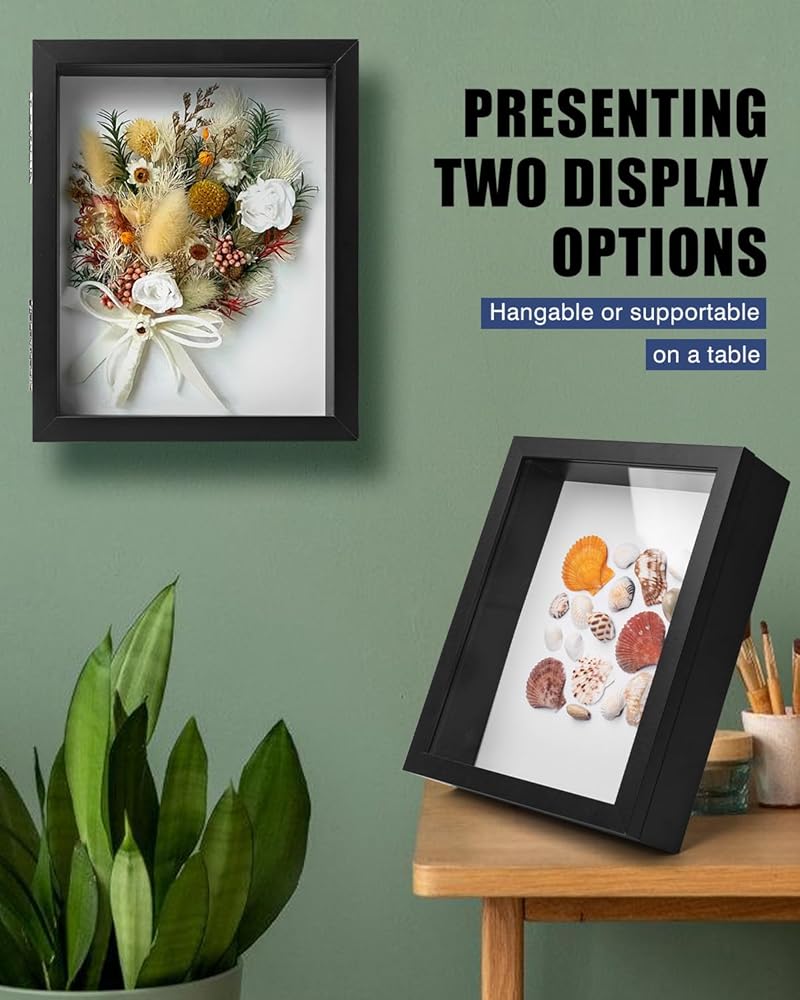 شاشة متعددة الاستخدامات وأنيقة: إطار صندوق الظل الأمامي المفصلي هذا هو خيارك المثالي لإنشاء عروض آسرة لذكرياتك ومقتنياتك العزيزة. ومن الجدير بالذكر أنها تتميز بعمق خارجي مثير للإعجاب يبلغ 1.58 بوصة، مما يوفر مساحة واسعة لعرض مجموعة واسعة من المقتنيات، من العملات المعدنية العتيقة إلى الزهور المجففة والمزيد. أبعاد الإطار الداخلي متعددة الاستخدامات مقاس 8 × 10 بوصة تجعله متوافقًا مع الصور والعناصر ذات الحجم القياسي، مما يسمح بالترتيب والعرض الإبداعي