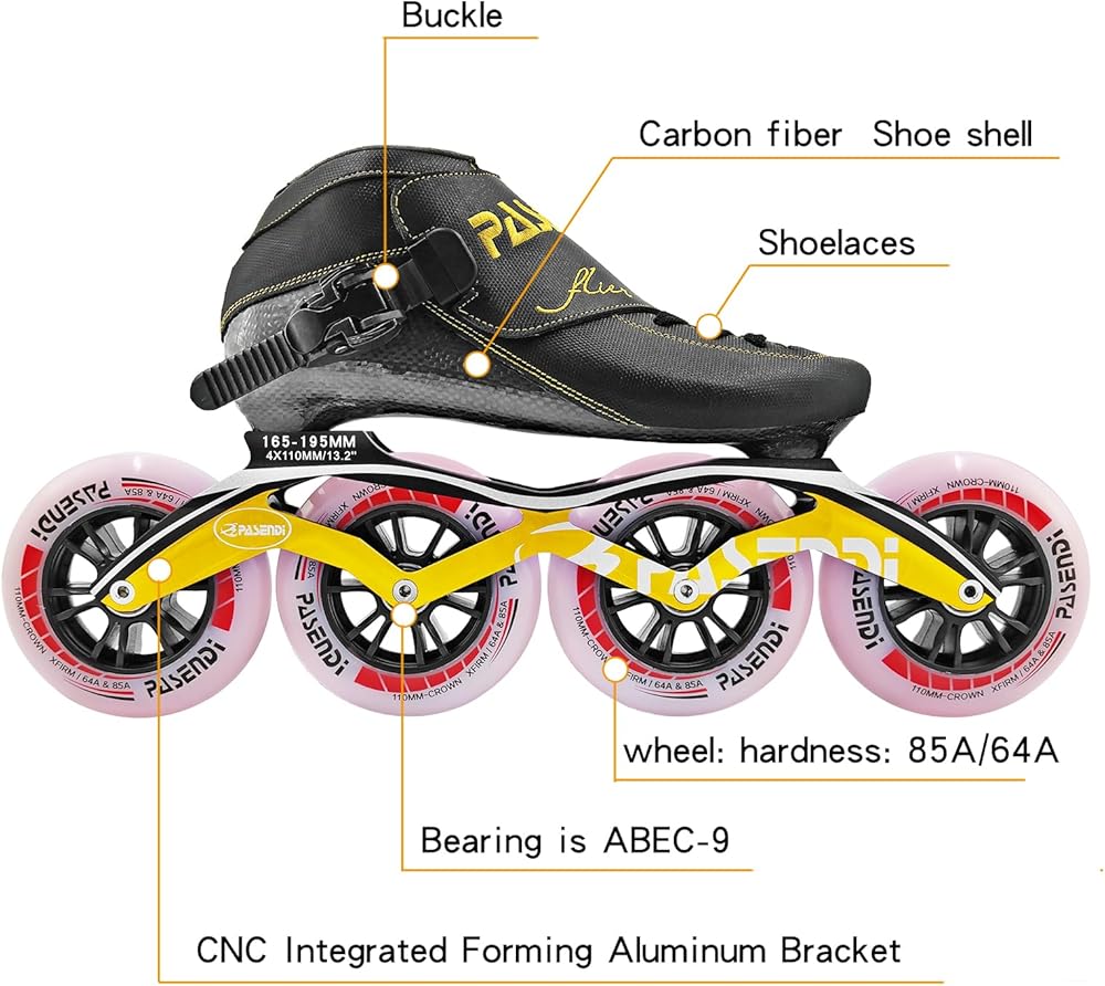 • Wheels:110MM,Dual Hardness Speed Skates Wheels