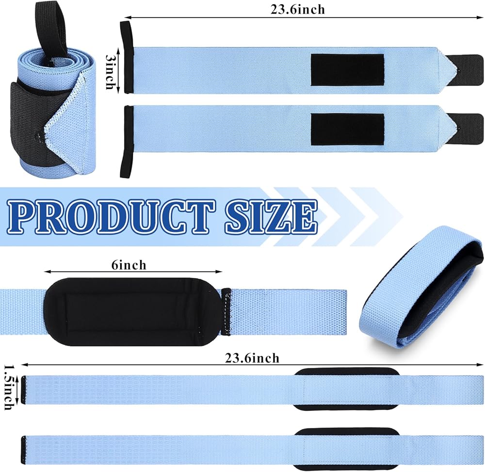 كمية كافية: تتضمن مجموعة أحزمة رفع الأثقال مجموعتين من أغطية المعصم وأشرطة الرفع؛ سوف تحصل على 2 لفافة معصم عالية التحمل يبلغ طول كل منها 20.4 سم لرفع الأثقال وحزامين للمعصم يبلغ طول كل منهما 24 بوصة، إجمالي 4 منتجات لتلبية احتياجاتك