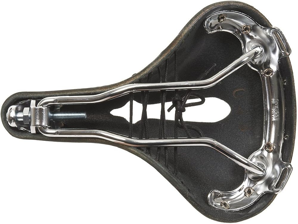 The B17 Imperial is another variation of our time-honored B17 design, featuring a distinctive cut-out section in the top of the leather, first conceived and registered by Brooks over a century ago. In the catalogue of J.B. Brooks & Co. dated 1890 a model called the B86 Imperial, with its unique "registered cutting", is described as "a sure preventative to all perennial pressure". Another distinctive feature of the B17 Imperial is the perforations along the lower edge of the leather sides, which are threaded together one side to the other by a lace. This can be adjusted to help maintain the saddle's shape and provide comfort in the long term. Tying the leather lace tightly pulls the sides of the saddle closer together, conversely loosening the lace enables the saddle sides to splay slightly further apart. This sideways fine-tuning of the B17 Imperial is of course in addition to the usual fore-and-aft tensioning mechanism common to all Brooks Saddles.