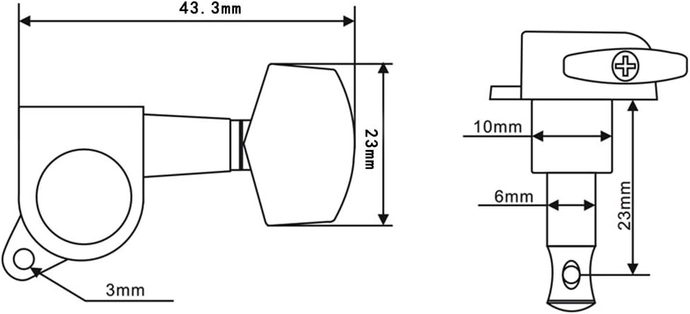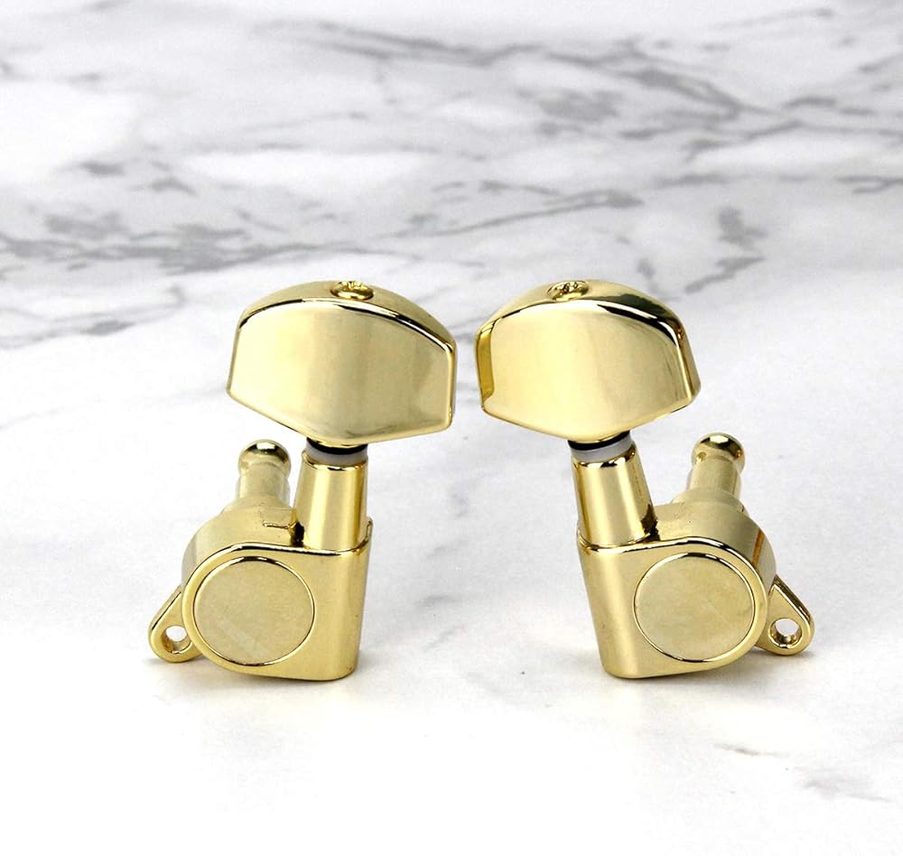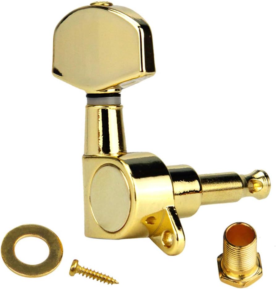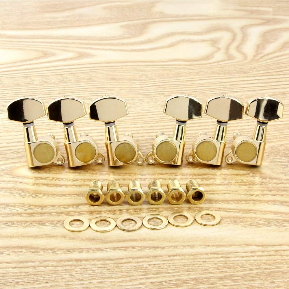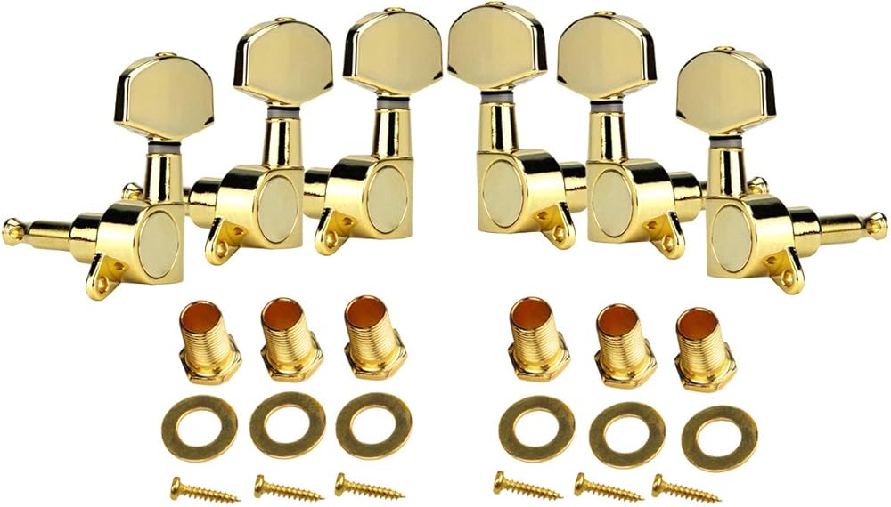 - العبوة تشتمل على: 6 × رؤوس آلة الجيتار (3R+3L)، 6 × حلقات، 6 × براغي، 6 × جلبة ملولبة.