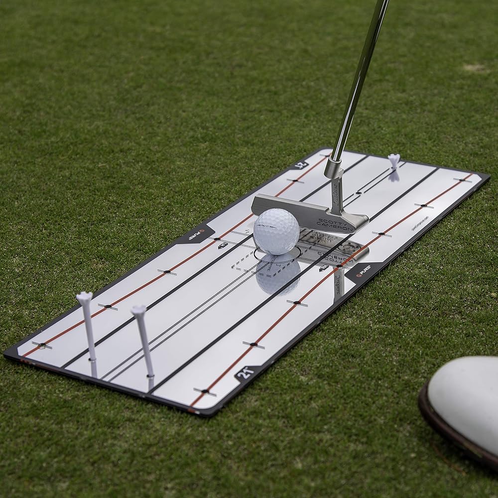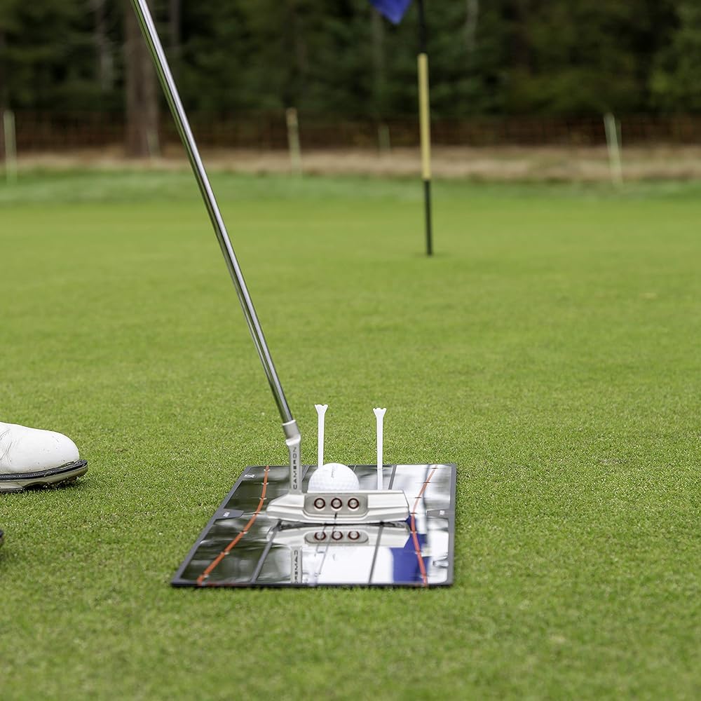 PERFECT YOUR PUTTING STROKE - Train and engrain the putting stroke method that works best for you. Mirror features markings and silicon pegs groove either an arching stroke or a straight back, straight through stroke. Works for right and left-handed players.