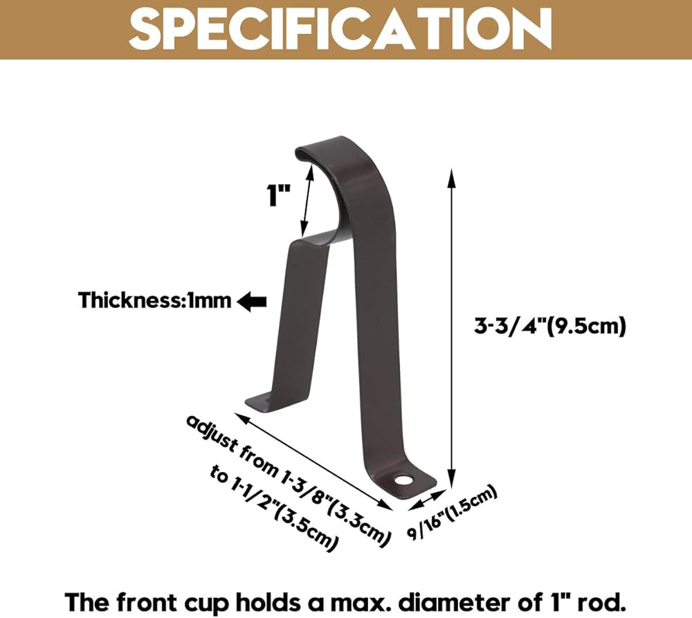 Size: The curtain rod backet holds a maximum diameter of 1"(2.5cm) rod. The length is 3-3/4"(9.5cm) come out from the wall,