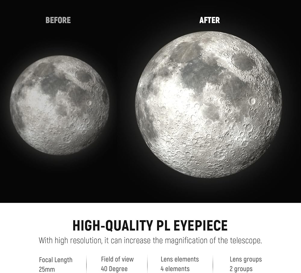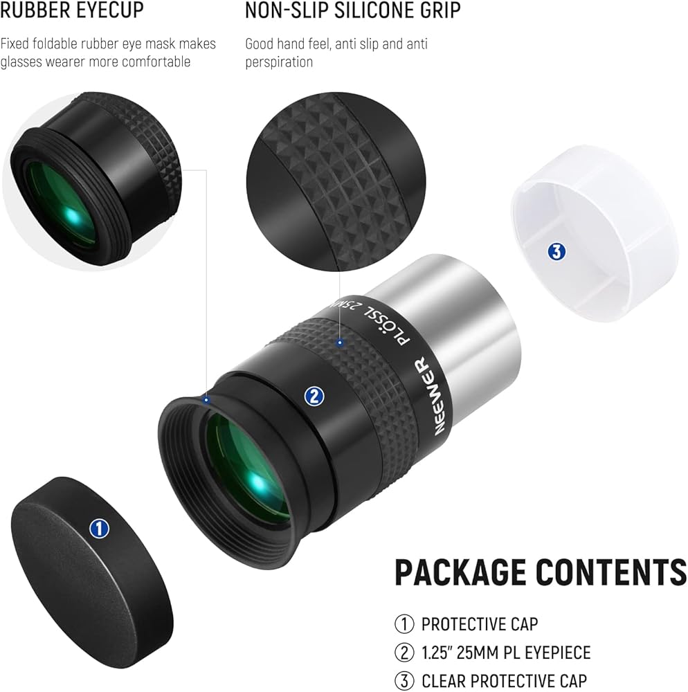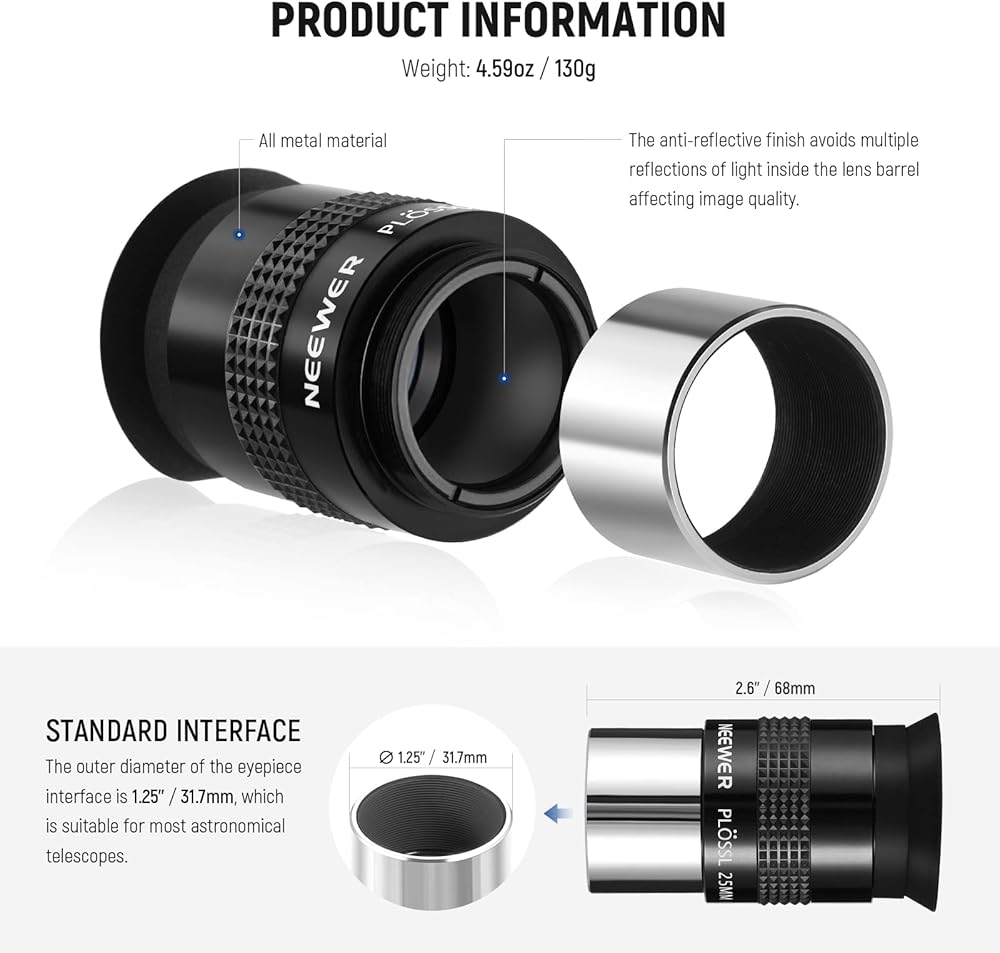 مثالي لجميع أنواع التلسكوبات العاكسة والتلسكوبات العاكسة والتلسكوبات الانكسارية مع عدسات 25 ملم. مثالي لمشاهدة المناظر الطبيعية والمراقبة الفلكية مثل سطح القمر والكواكب والسديم ومجموعات النجوم