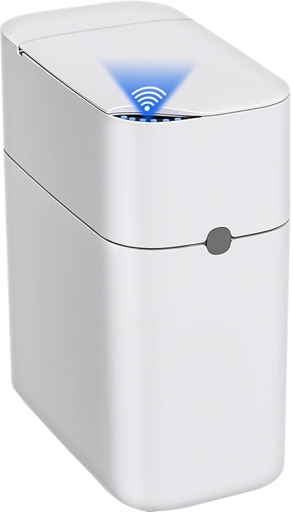 【تصميم عصري وعصري】تخلق المنحنيات الناعمة والشطب الدائري ونظام الألوان الرمادي الكلاسيكي باللونين الأبيض والأسود تصميمًا بسيطًا ولكنه متطور مناسب لأنماط المنزل الحديثة والعتيقة، مما يضيف الجمال إلى مساحتك بطريقة عملية. تصميم نحيف مقاس 15.24 سم يمكن وضعه في أي مساحة ضيقة، مثل فتحة الحمام الضيقة، زاوية غرفة المعيشة، بجانب سرير غرفة النوم. سعة التخزين 3 جالون تحمل زجاجات الشامبو وعلب الكوكاكولا وغيرها من القمامة الكبيرة. الأبعاد الخارجية: 11.3 بوصة طول × 6.1 بوصة عرض × 12.9 بوصة عمق./سلة مهملات الحمام الأوتوماتيكية