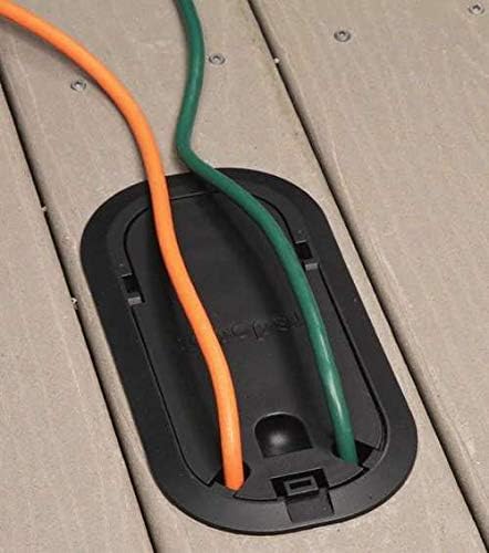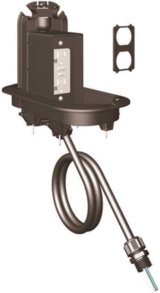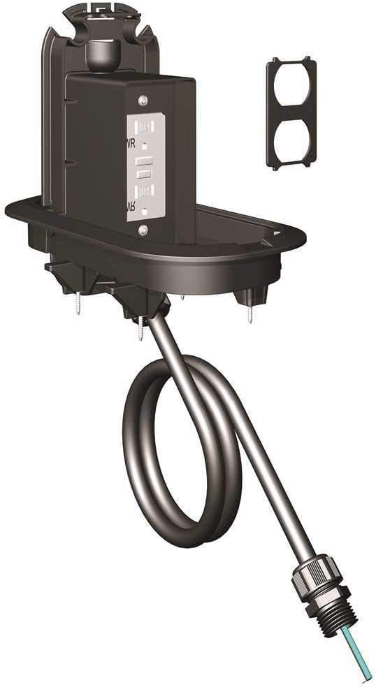 Includes Four Arms and #8-32 Screws for Attachment to Deck and 2 Cord Fittings^^Features Meets new UL and NEC requirements for while-in-use outdoor receptacles The power outlet remains recessed below the raised deck whether in use or not Duplex adapter plate provided for use with conventional TR/WR duplex receptacle Eliminates the potential safety hazard of power cords draping along the deck surface^^Application Provides a safe and aesthetic solution for outdoor raised deck applications Ideal for outdoor living spaces and light commercial raised deck applications Residential recreation areas, outdoor restaurants and hospitality recreation areas^^General Material: Non-Metallic Color: Black. Easy to use and handle. High quality product. Manufactured in China.