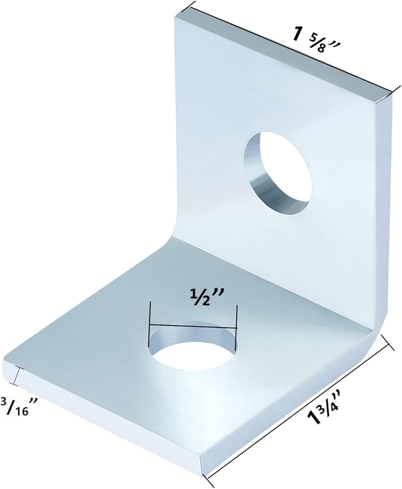 2 Hole L Shaped 90 Degree Angle Connector Bracket, Thickness 4.8 mm, Fit for 1/2" Bolt in 1-5/8" Strut Channel, Steel Galvanized, 10 Pack